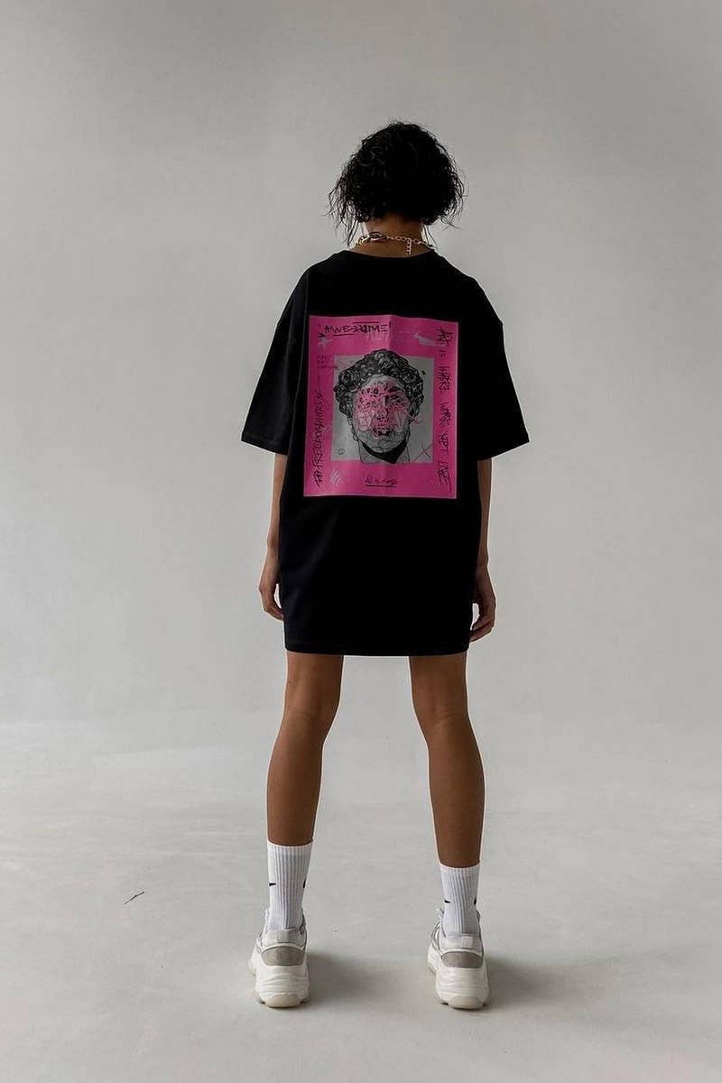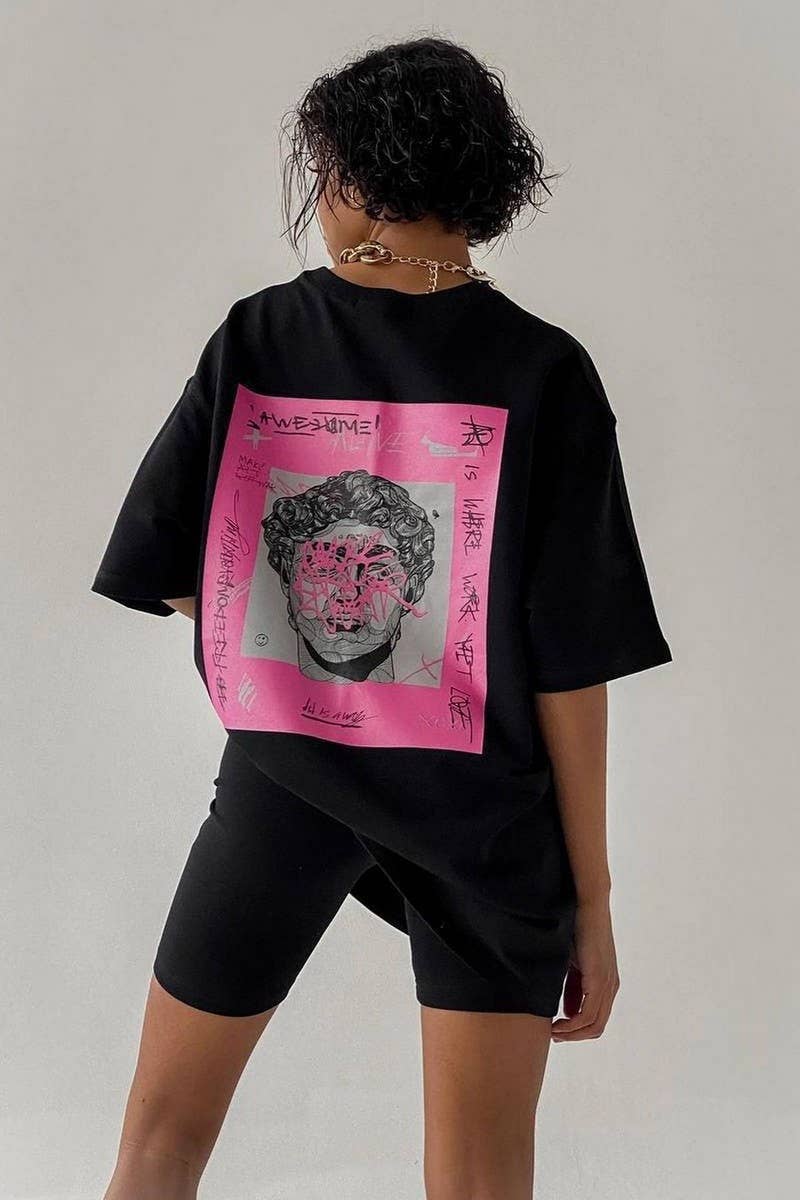 ROUND NECK BACK ABSTRACT PRINT SHORT SLEEVE TOP