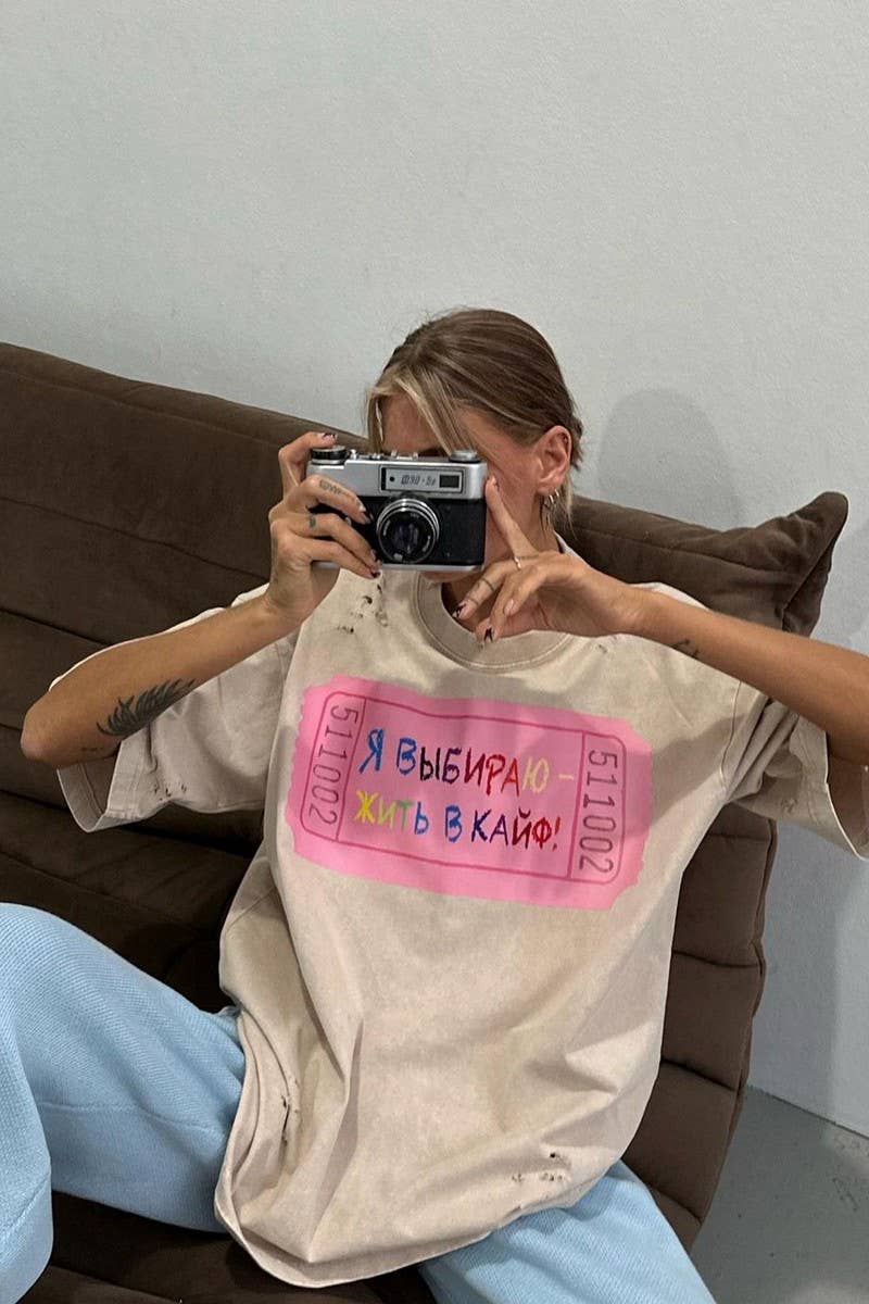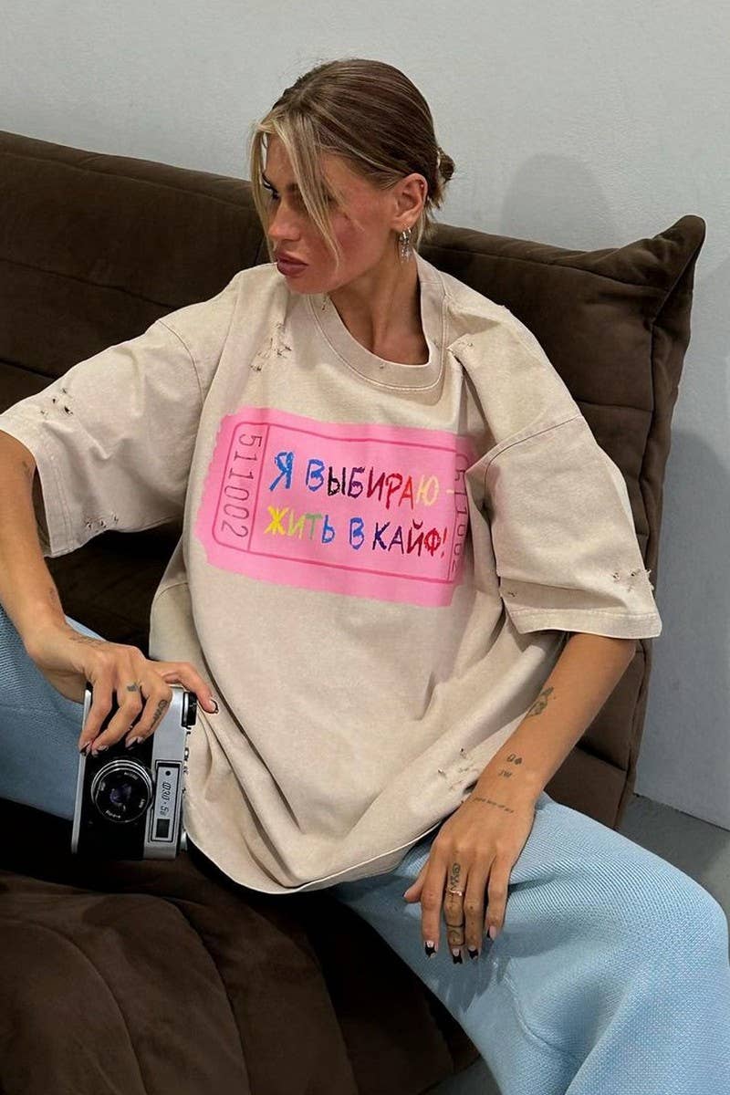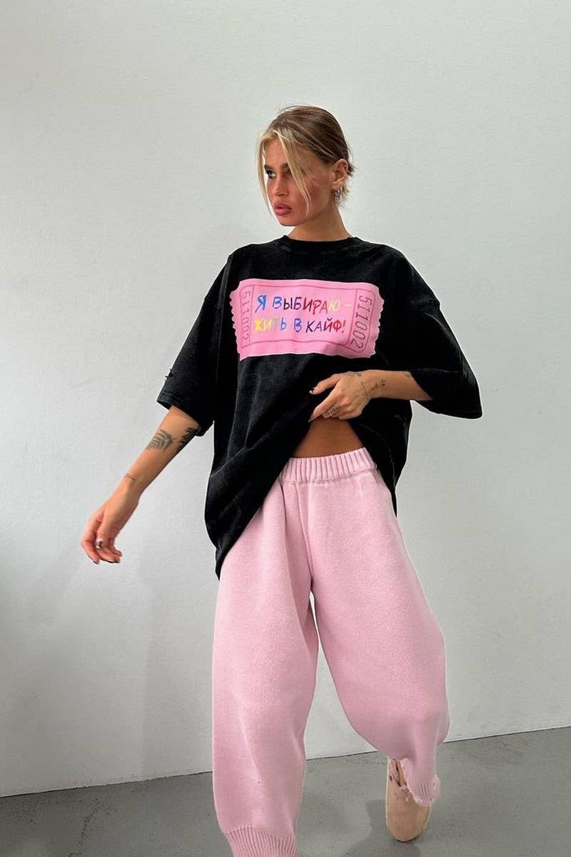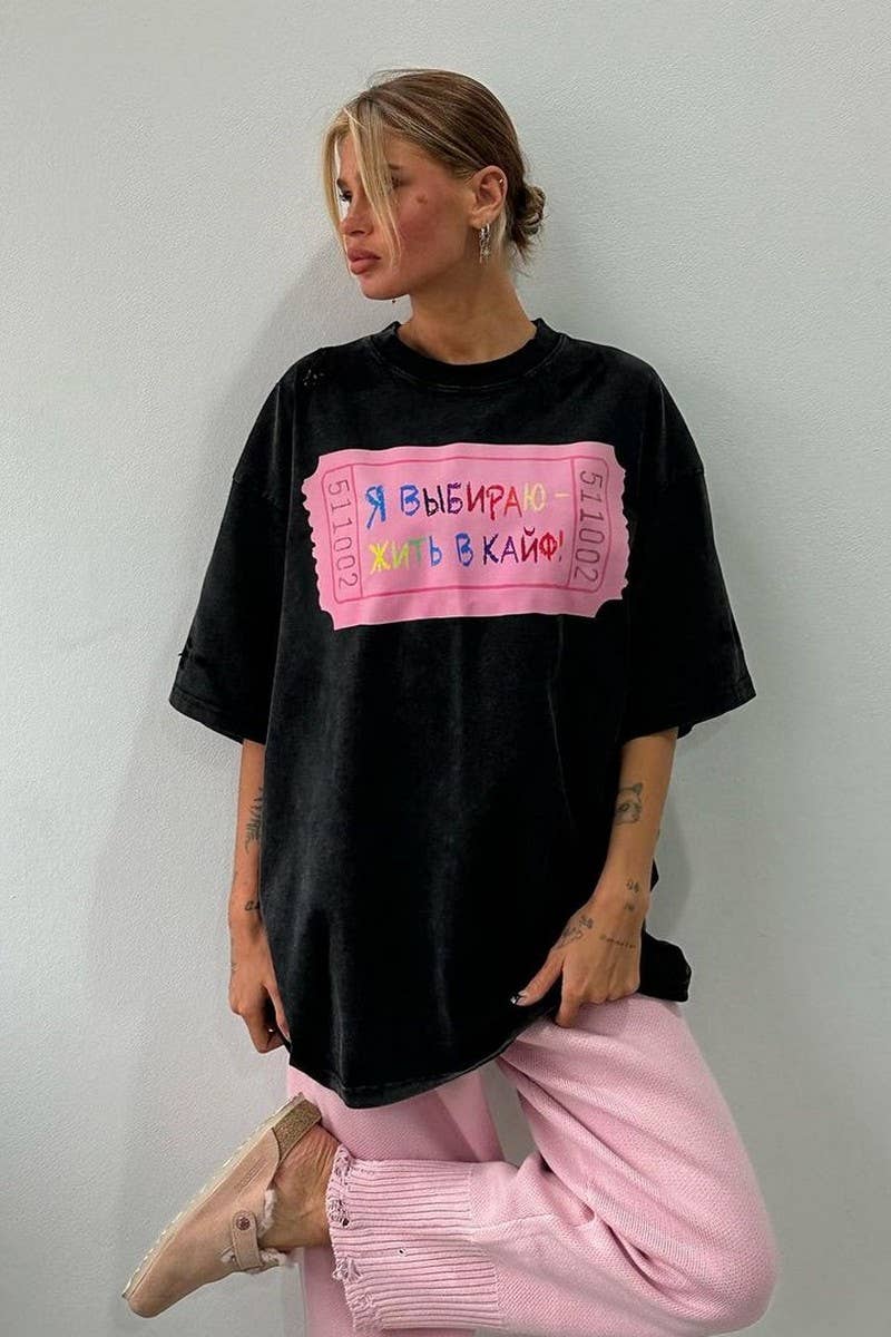 LETTER PRINT CONTRASTING COLOR CREW NECK T-SHIRT