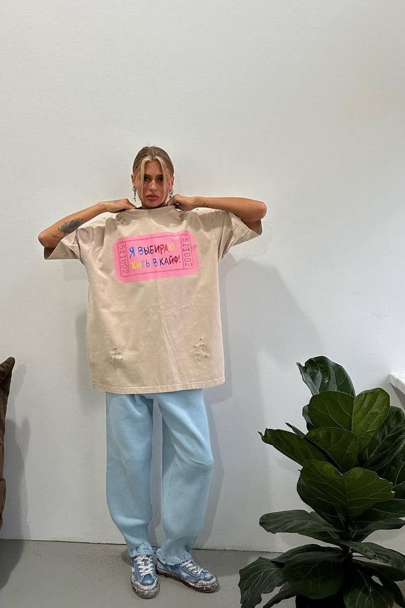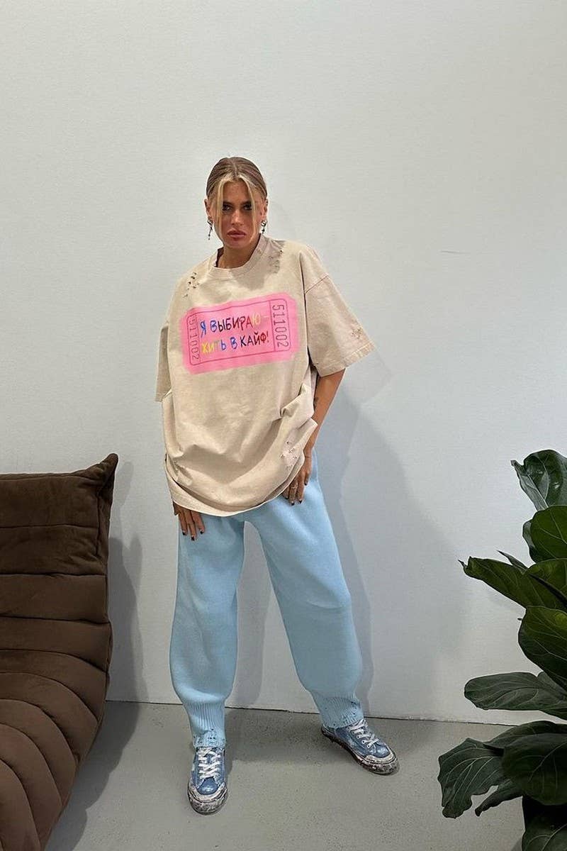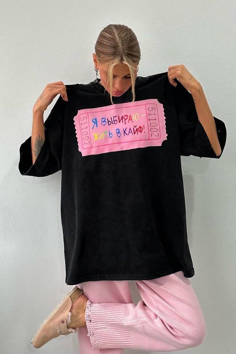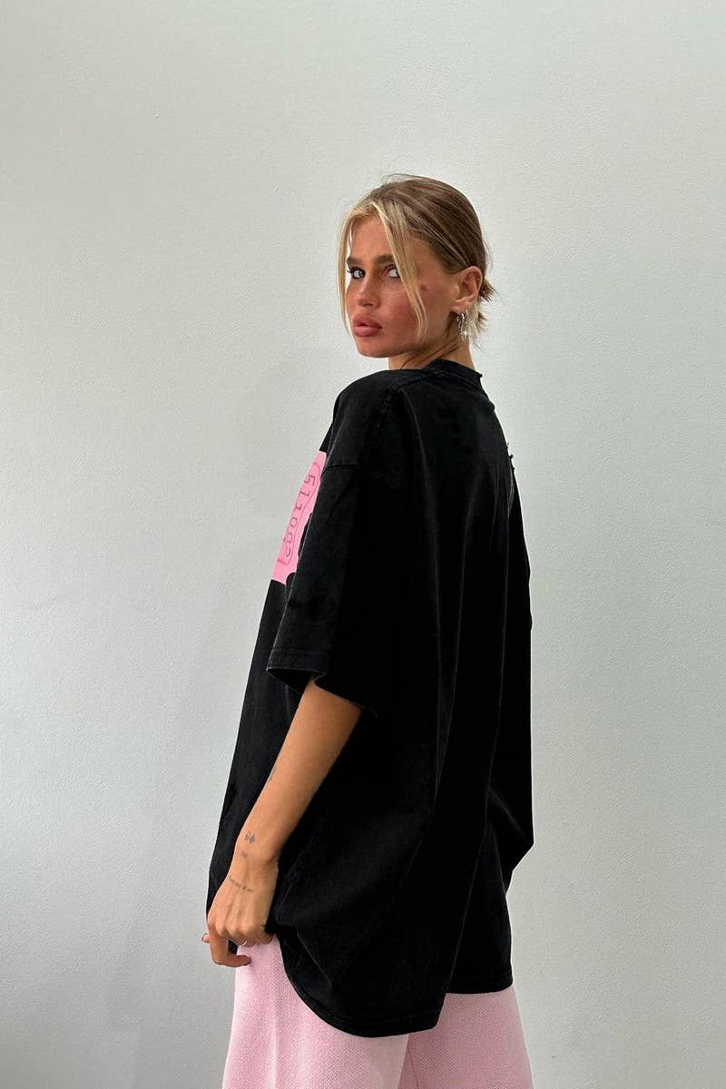 LETTER PRINT CONTRASTING COLOR CREW NECK T-SHIRT