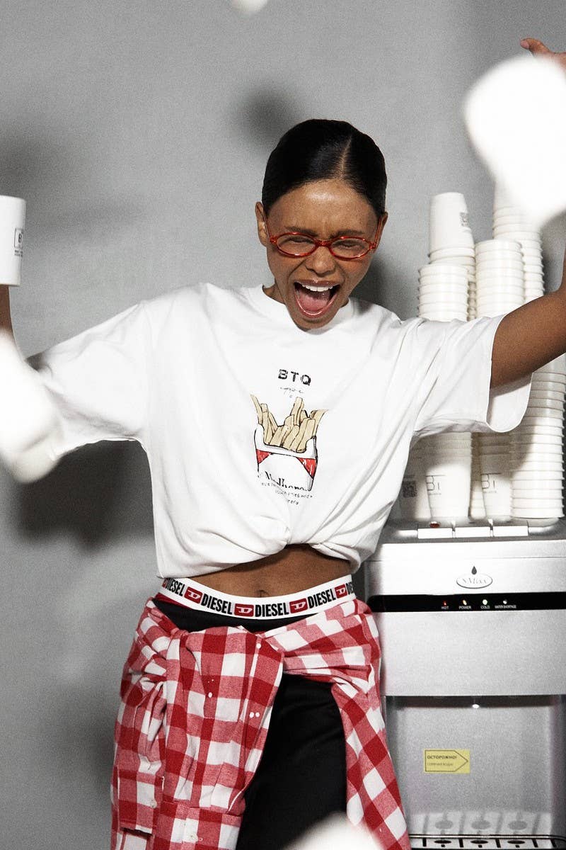 FRENCH FRIES PRINT LOOSE CREWNECK T-SHIRT