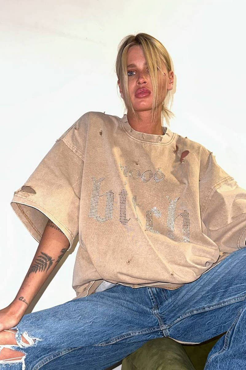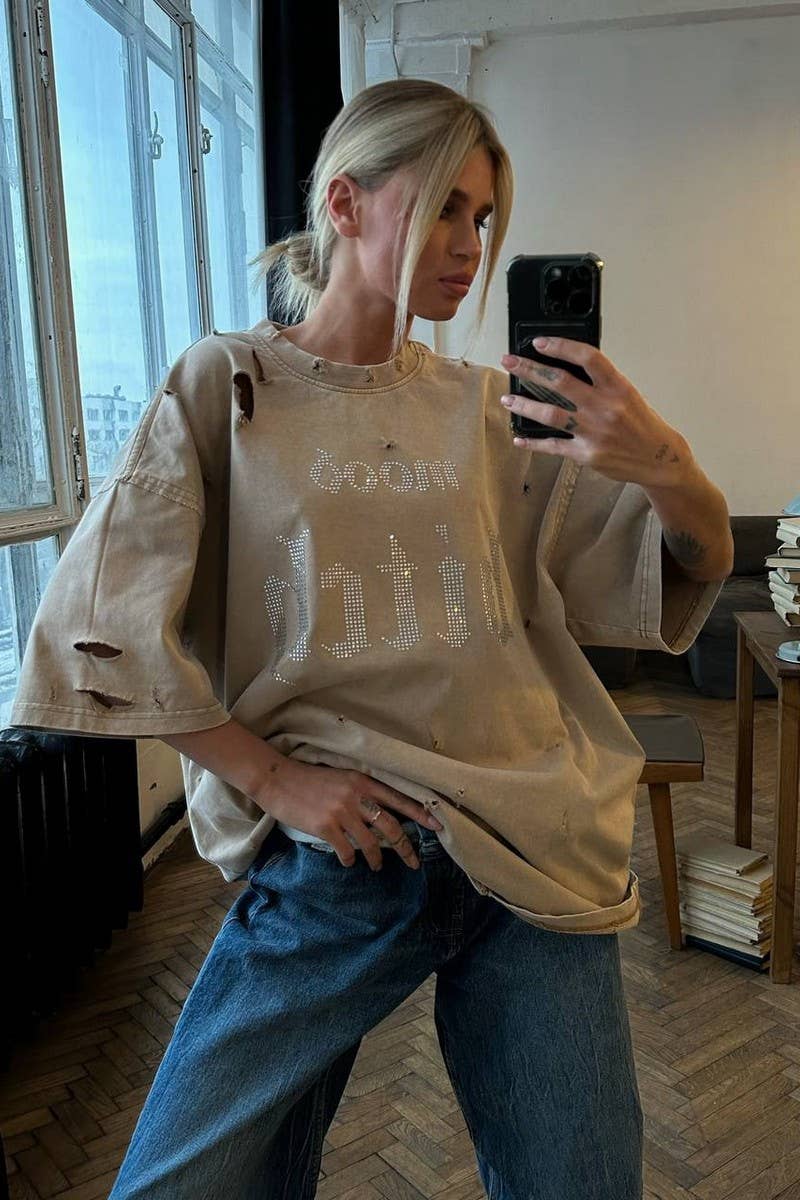 LETTER HOLE LOOSE SHORT-SLEEVED T-SHIRT