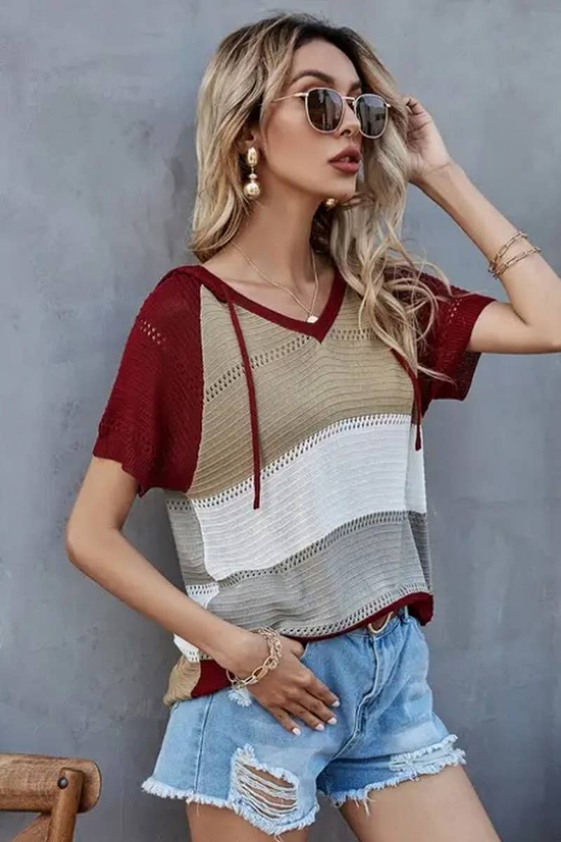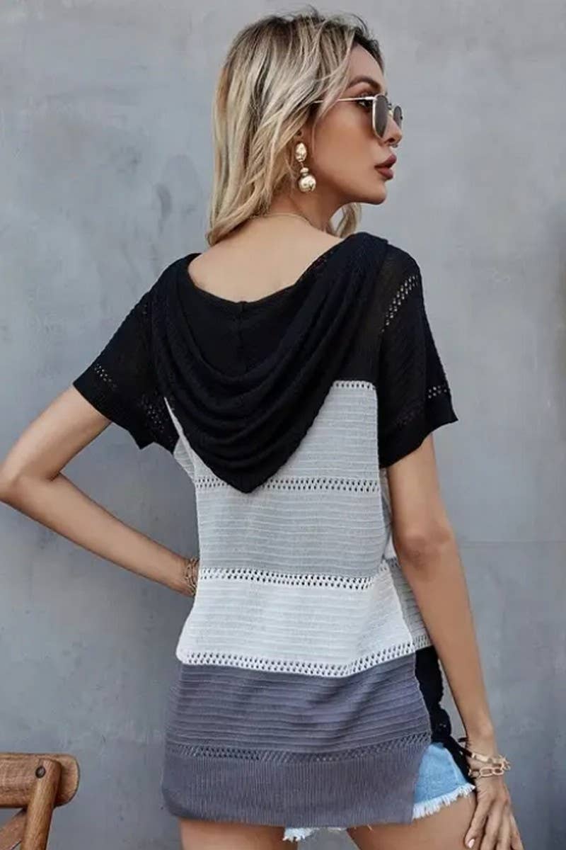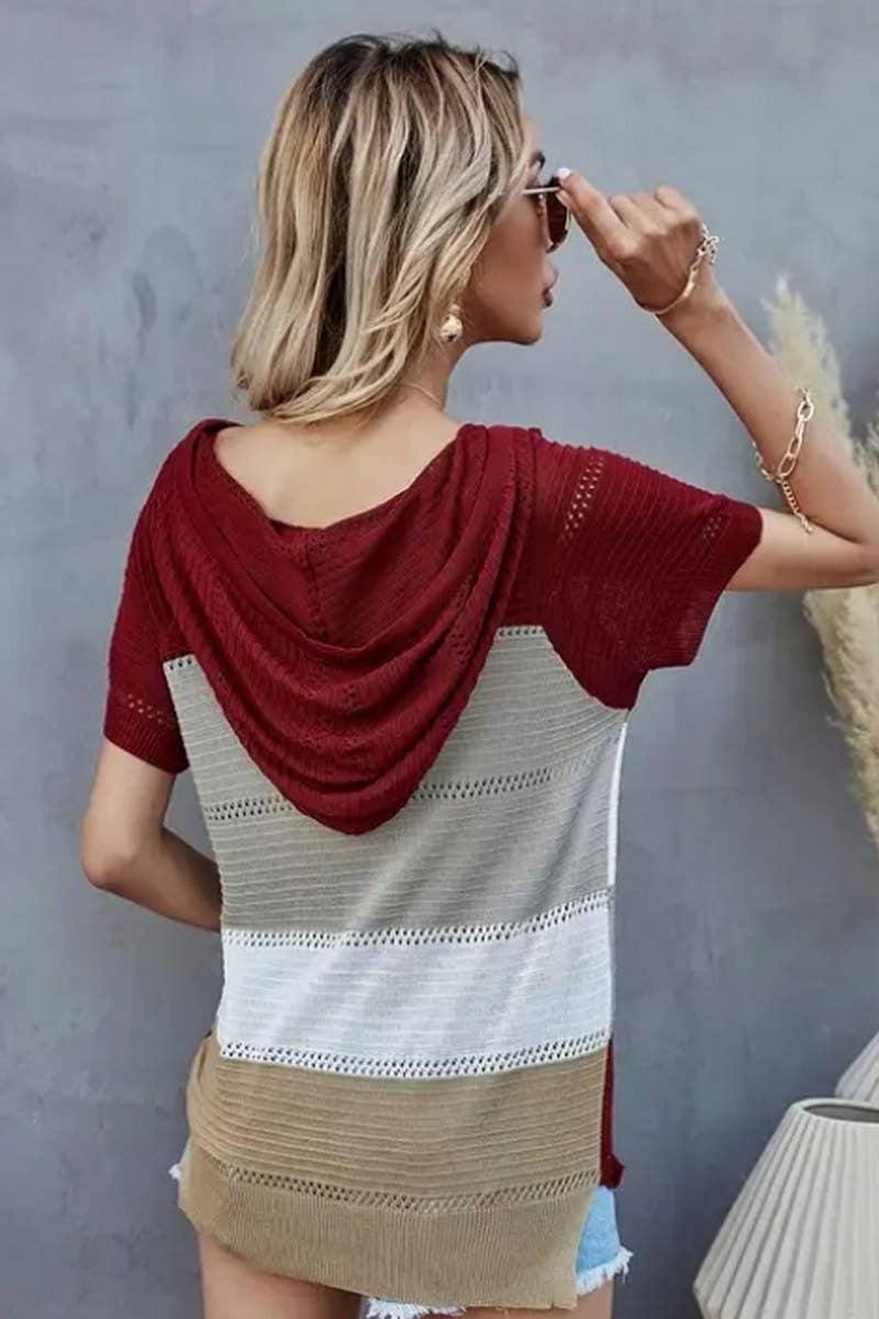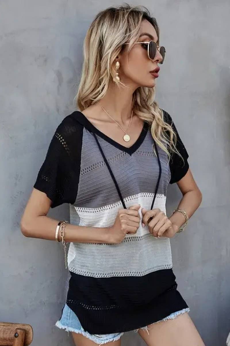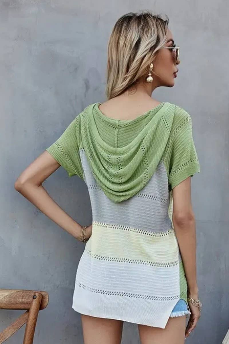 SPRING AND SUMMER STRIPED HOODED T-SHIRT