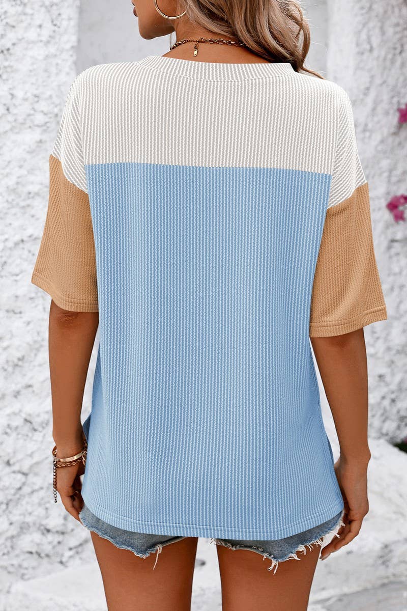 SUMMER ROUND NECK COLOR BLOCK LOOSE T-SHIRT