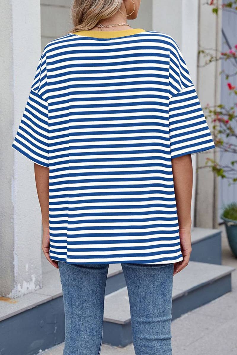 SPRING AND SUMMER STRIPED CONTRAST LOOSE T-SHIRT