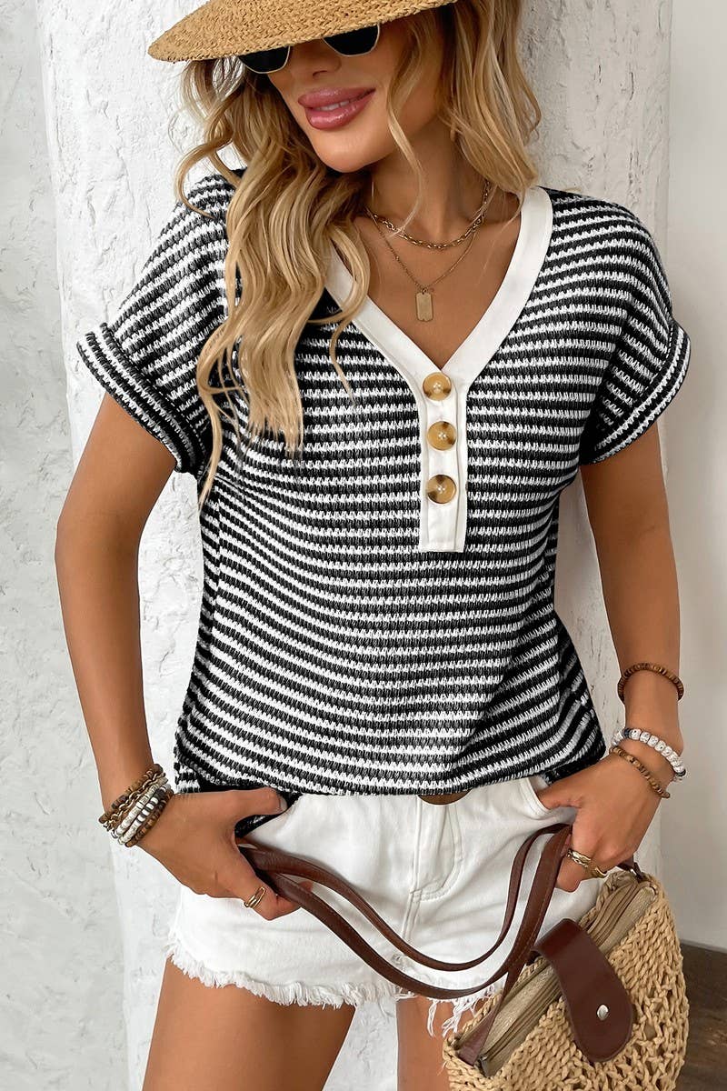 MER WOMEN'S KNITTED V-NECK SHORT SLEEVES