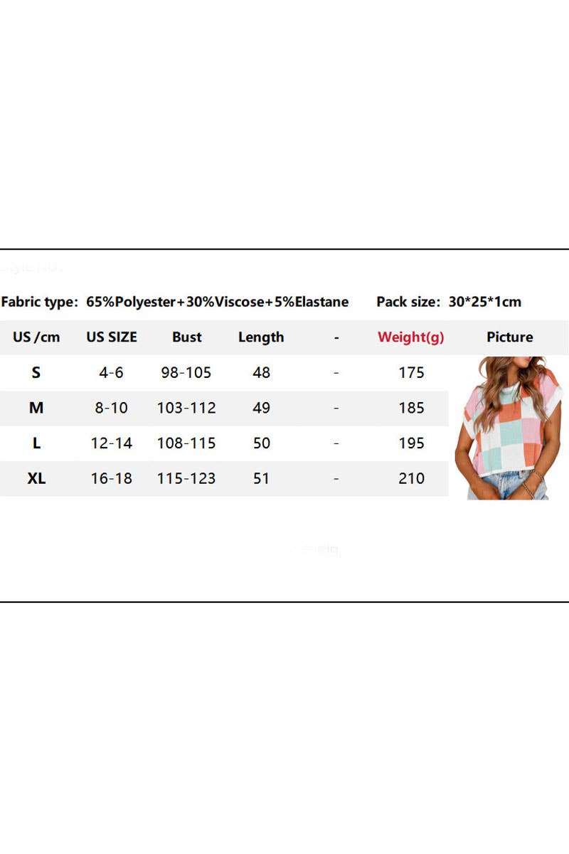 SUMMER NAVEL CHECKERBOARD SHORT SLEEVE KNIT TOP