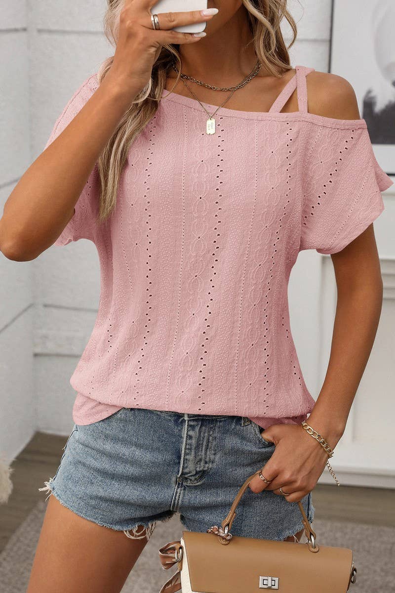 SUMMER SOLID COLOR ONE SHOULDER HOLLOW TOP