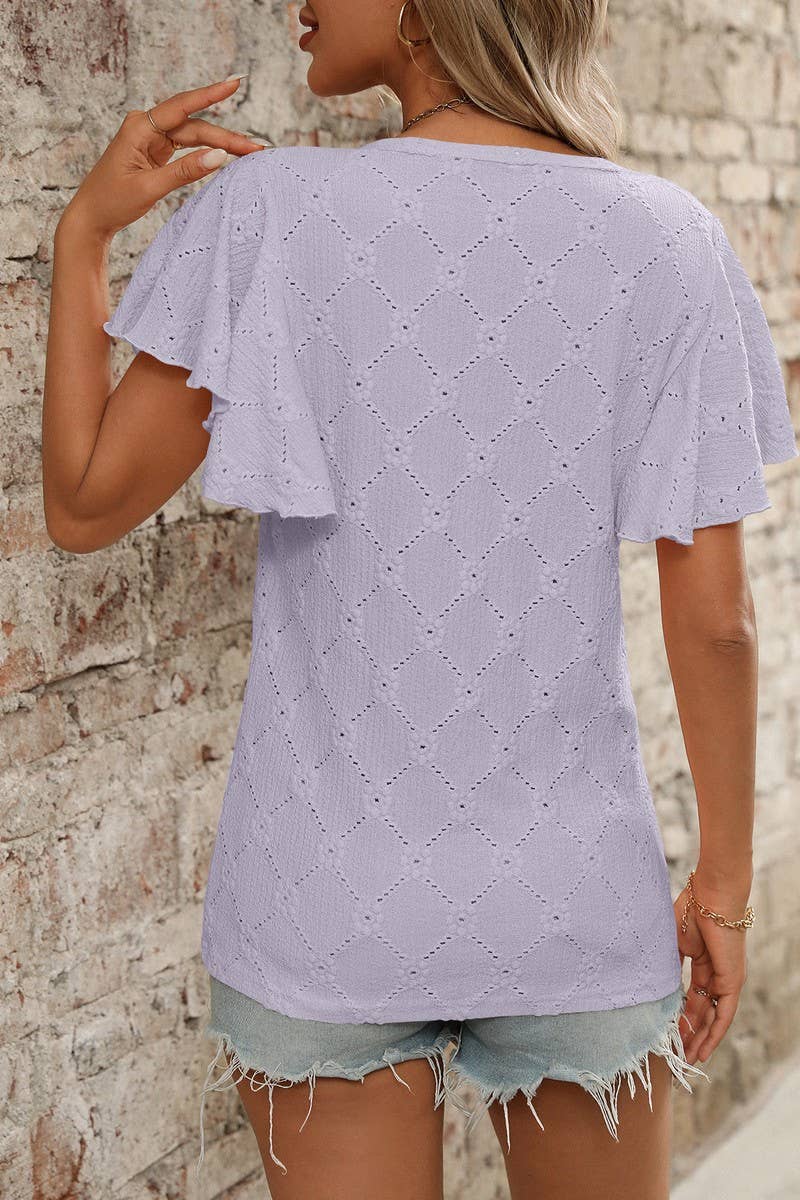 SUMMER FLOWER HOLLOW LOTUS SLEEVE CASUAL TOP