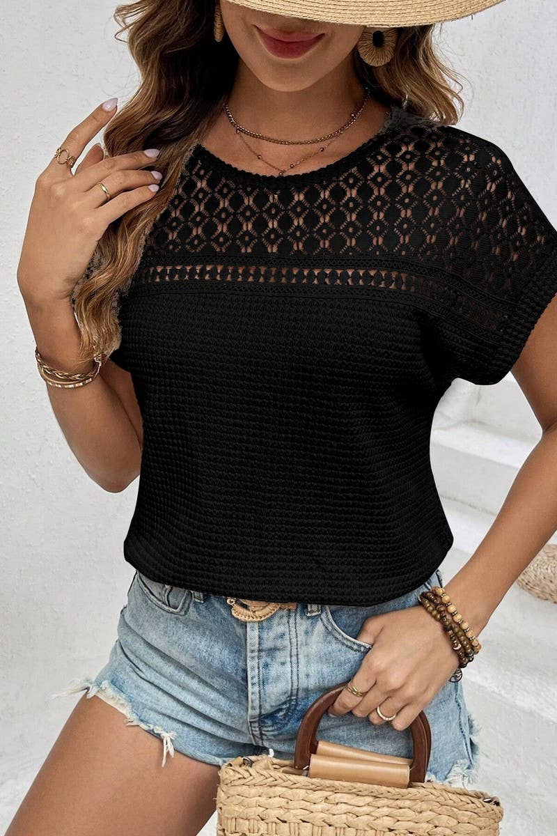 NEW SUMMER RAGLAN HOLLOW SHORT-SLEEVED T-SHIRT
