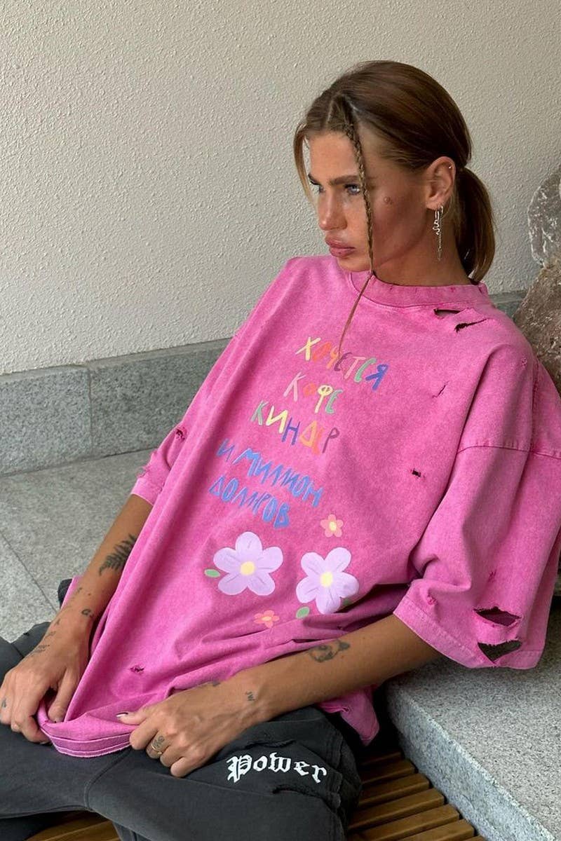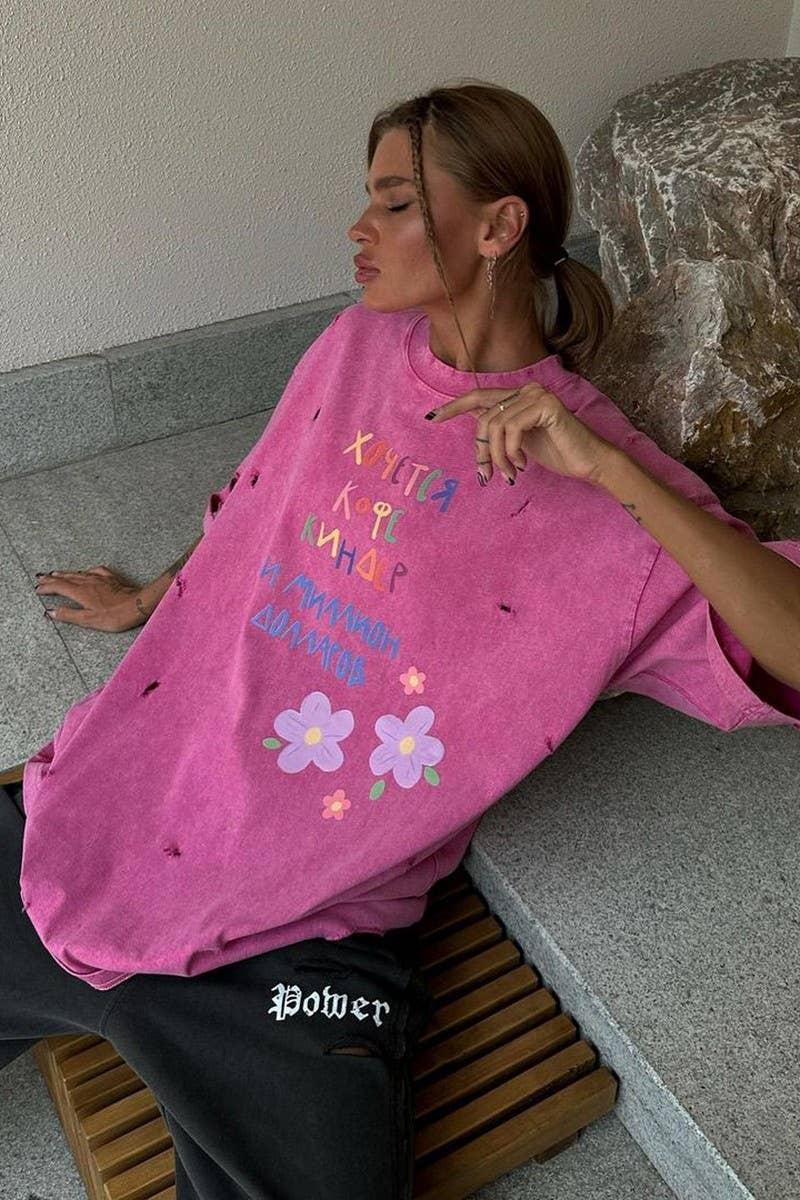 LETTERING LOOSE LAZY CASUAL MID-LENGTH T-SHIRT