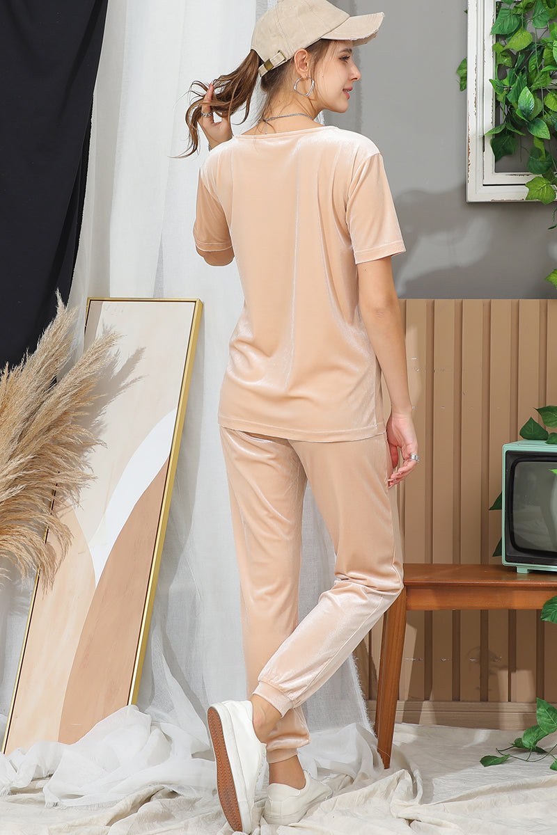 SHORT SLEEVE ROUND NECK VELVET CASUAL TUNIC TOP