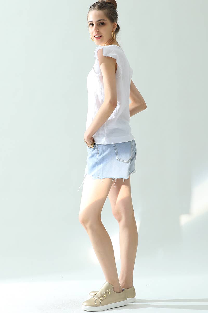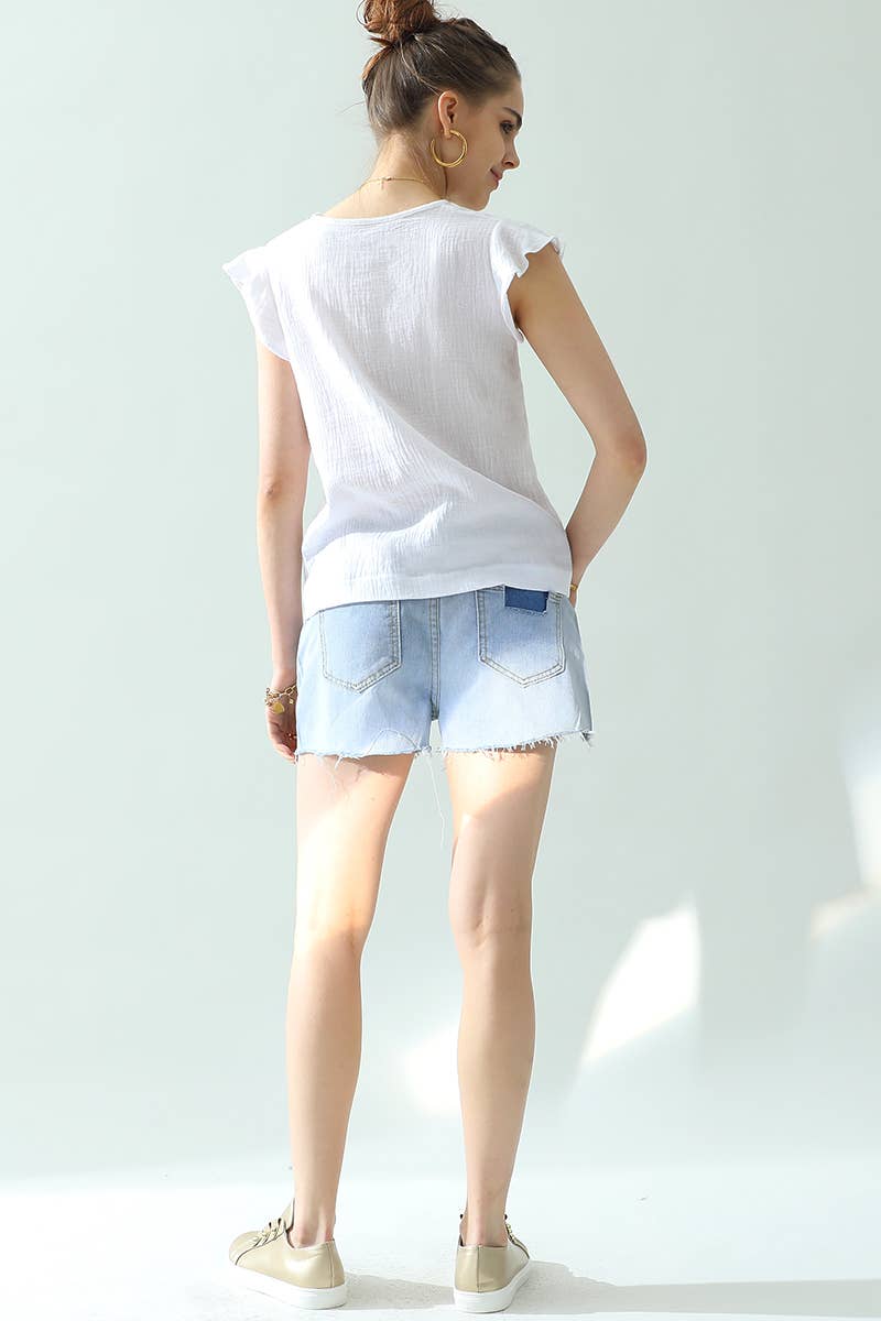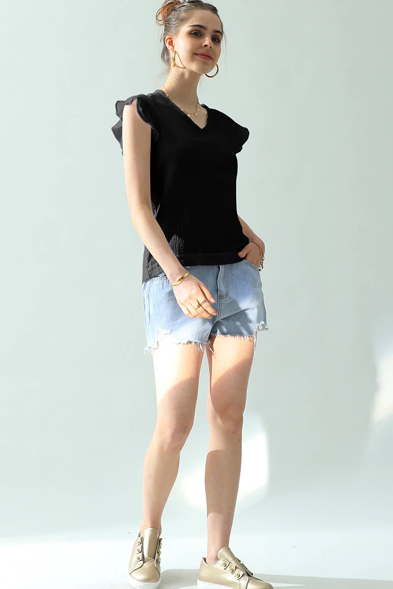 V NECK BUTTERFLY RUFFLE TUNIC TOP