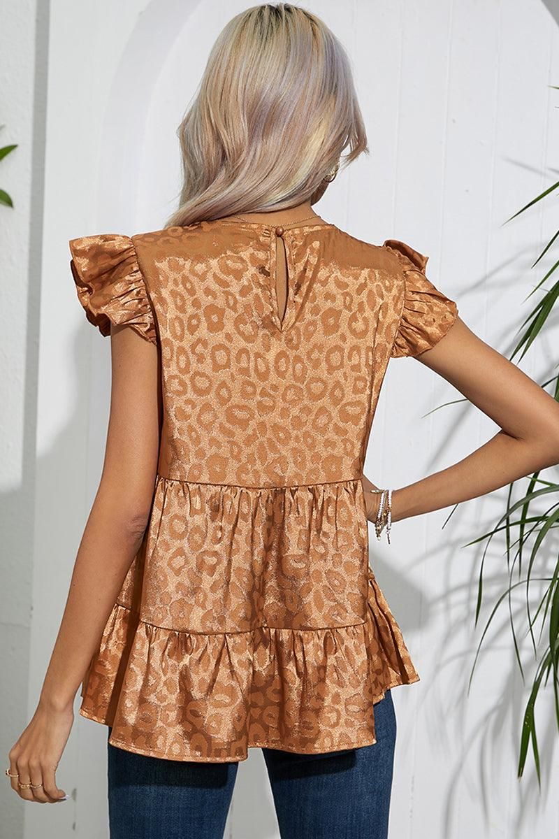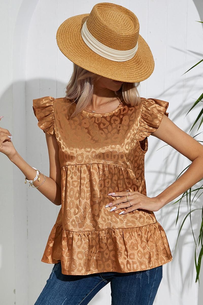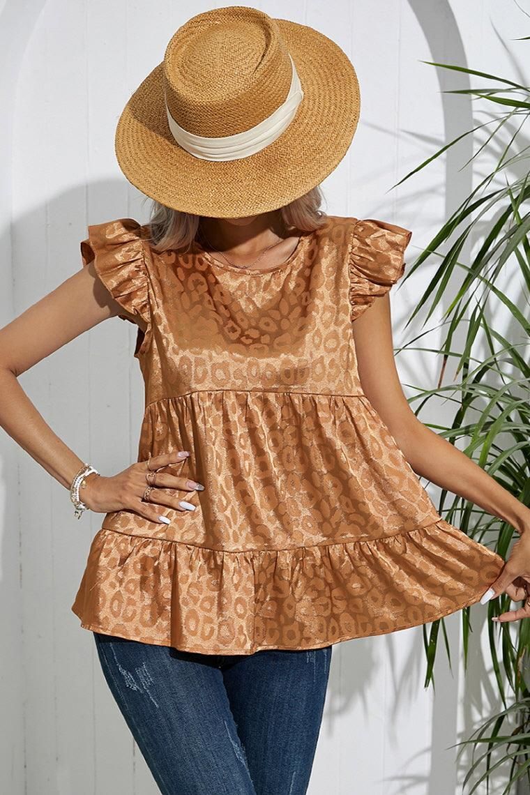 FRILL SLEEVE PATTERNED JACQUARD TUNIC TOP