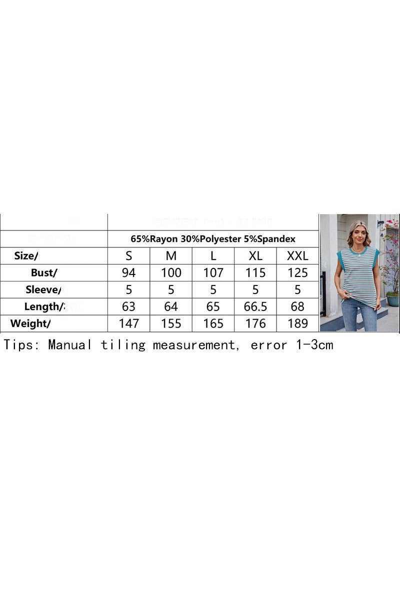 SUMMER STRIPED ROUND NECK SHORT SLEEVE T-SHIRT