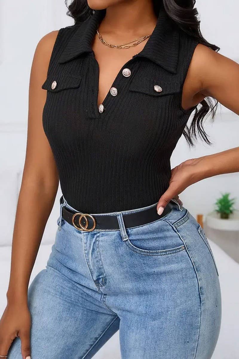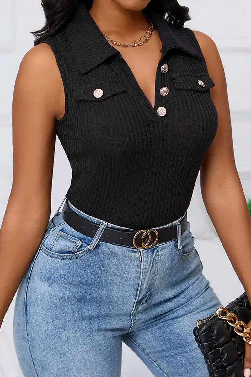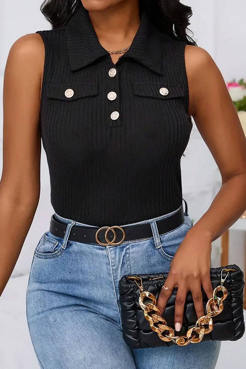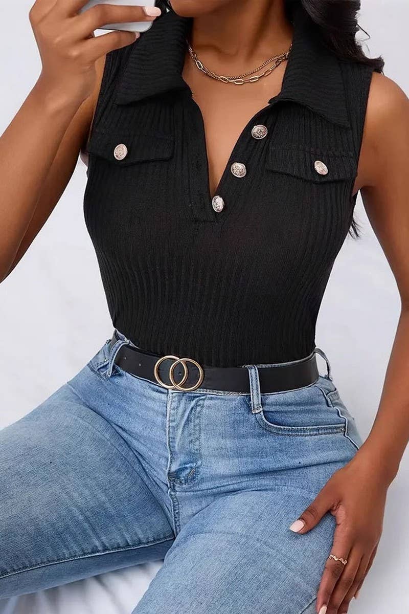 LAPEL CONTRAST COLOR RIBBED SLIM FIT KNITTED VEST