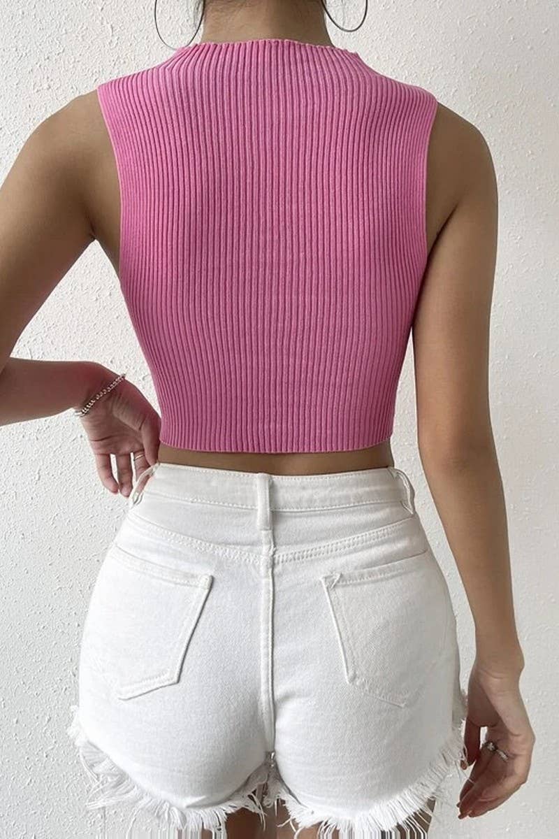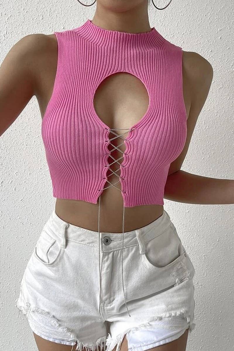 SEXY HOLLOW STRAP SOLID COLOR SLIM FIT KNIT VEST