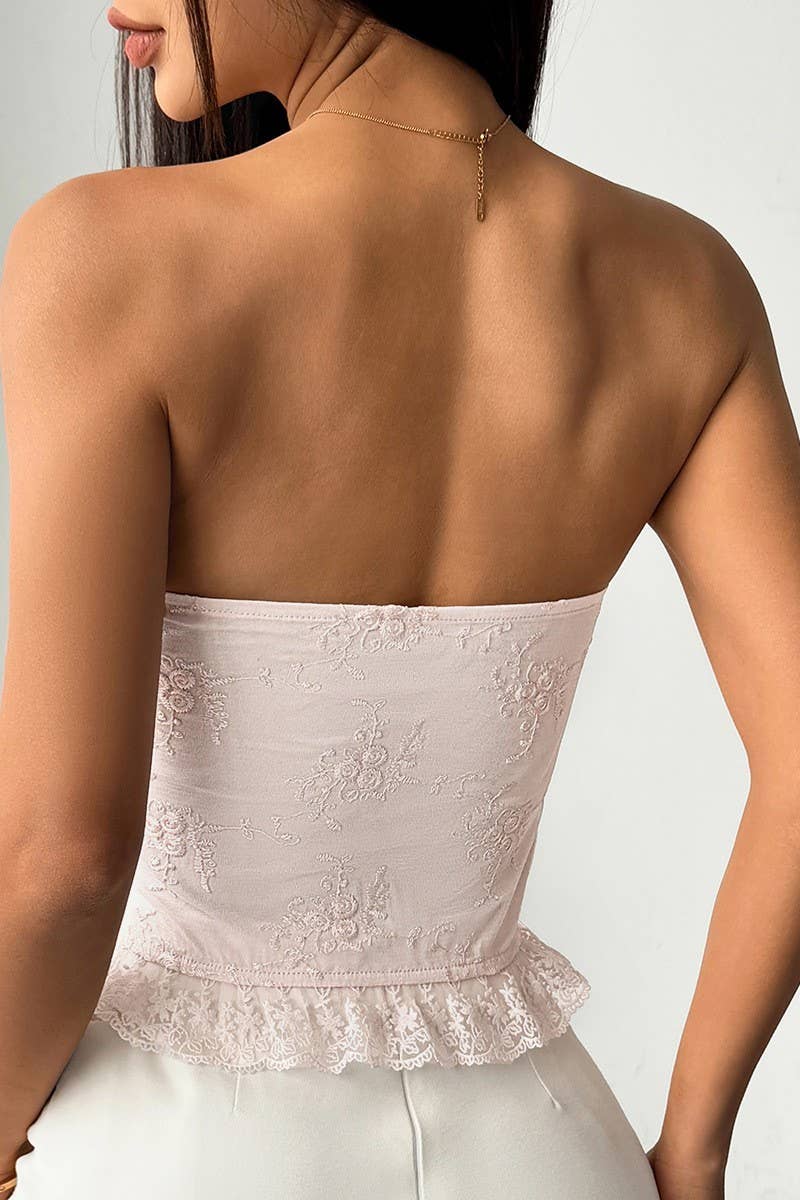 EMBROIDERED HANDMADE FLOWER LACE LACE-UP VEST