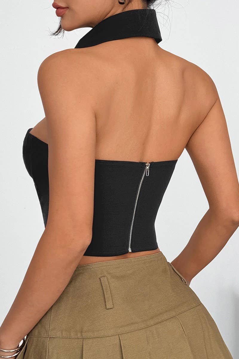 LEOPARD PRINT TIE WRAP HERRINGBONE TANK TOP