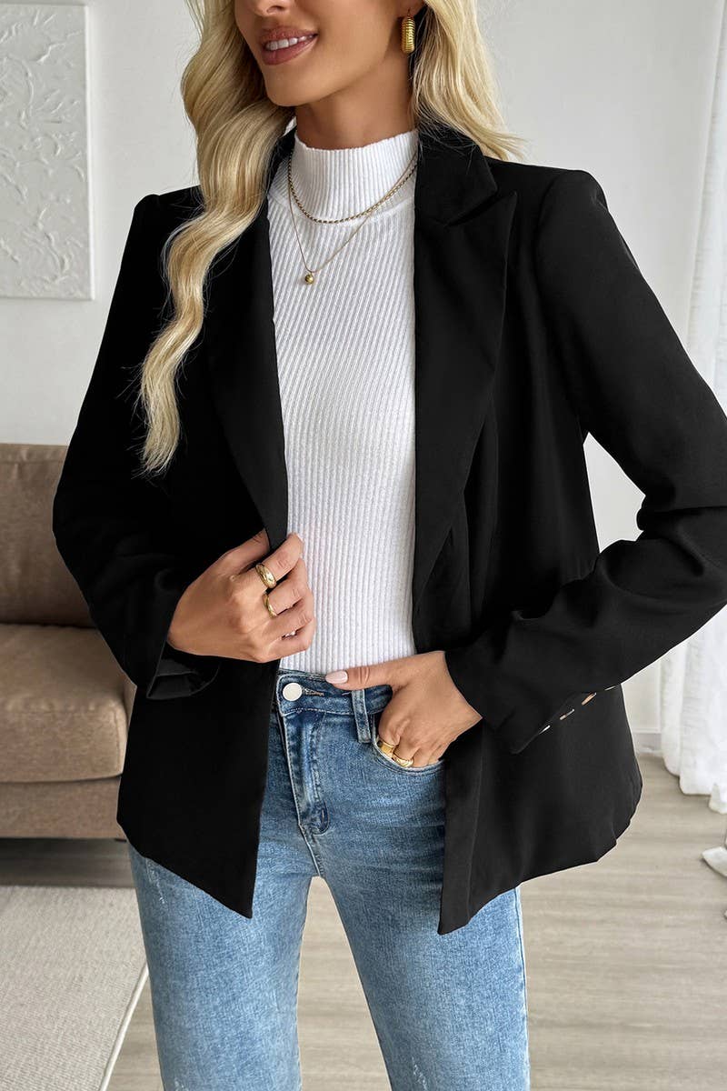 CASUAL COMMUTER SUIT COLLAR BLACK SUIT JACKET