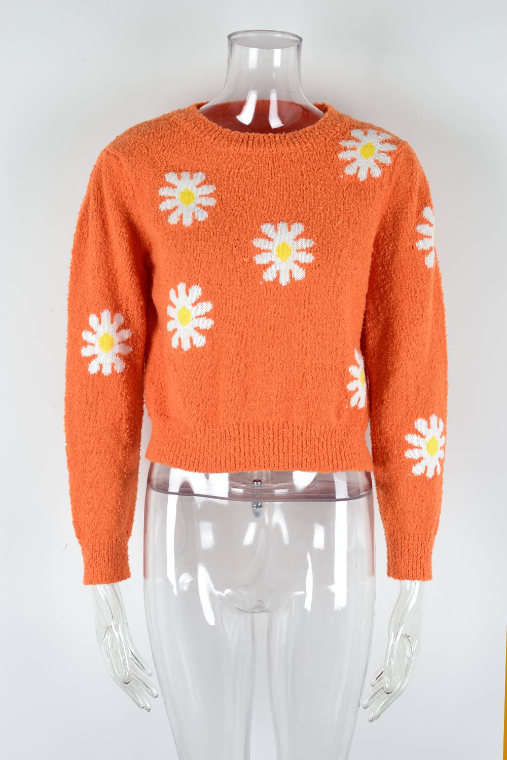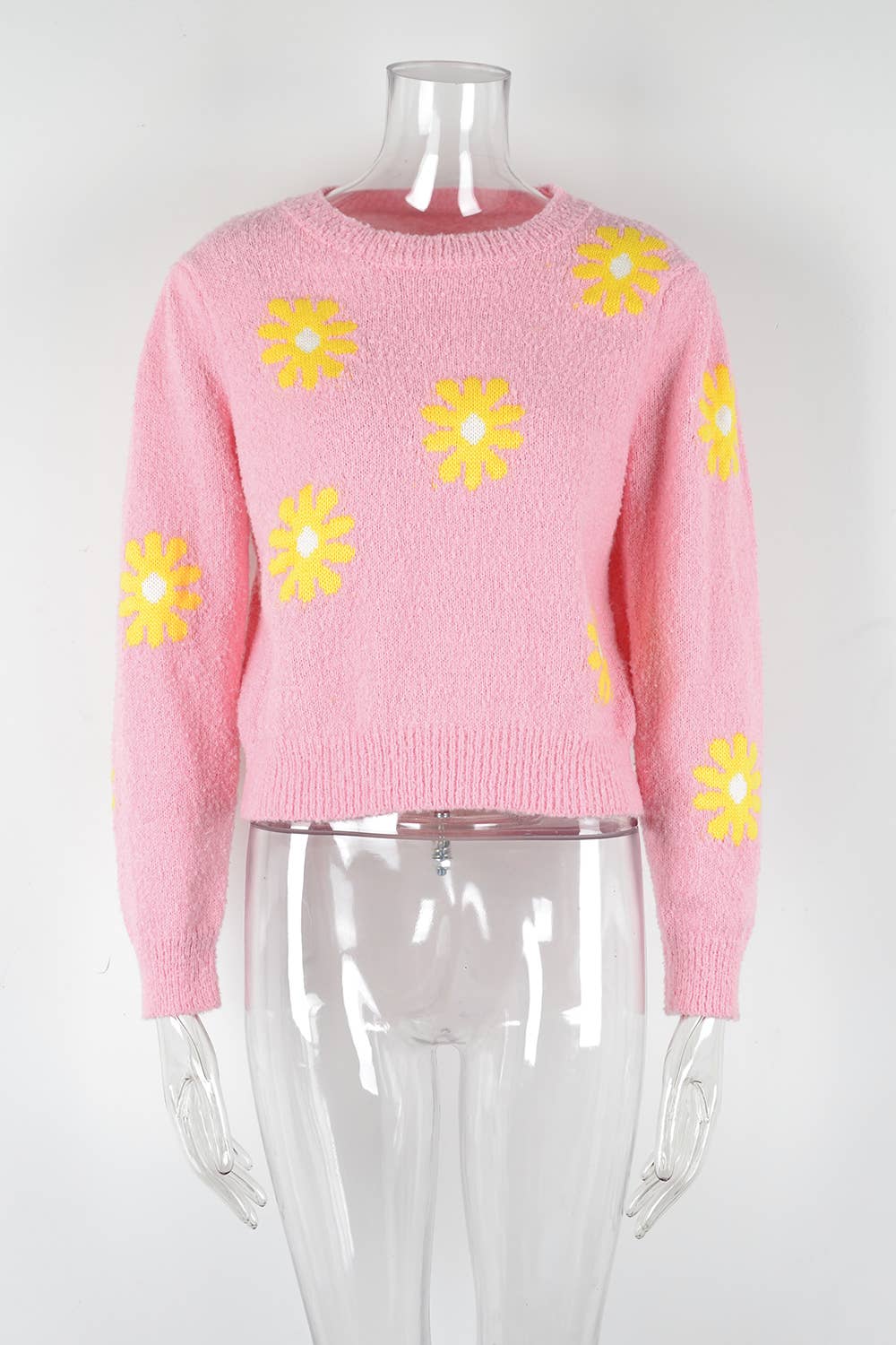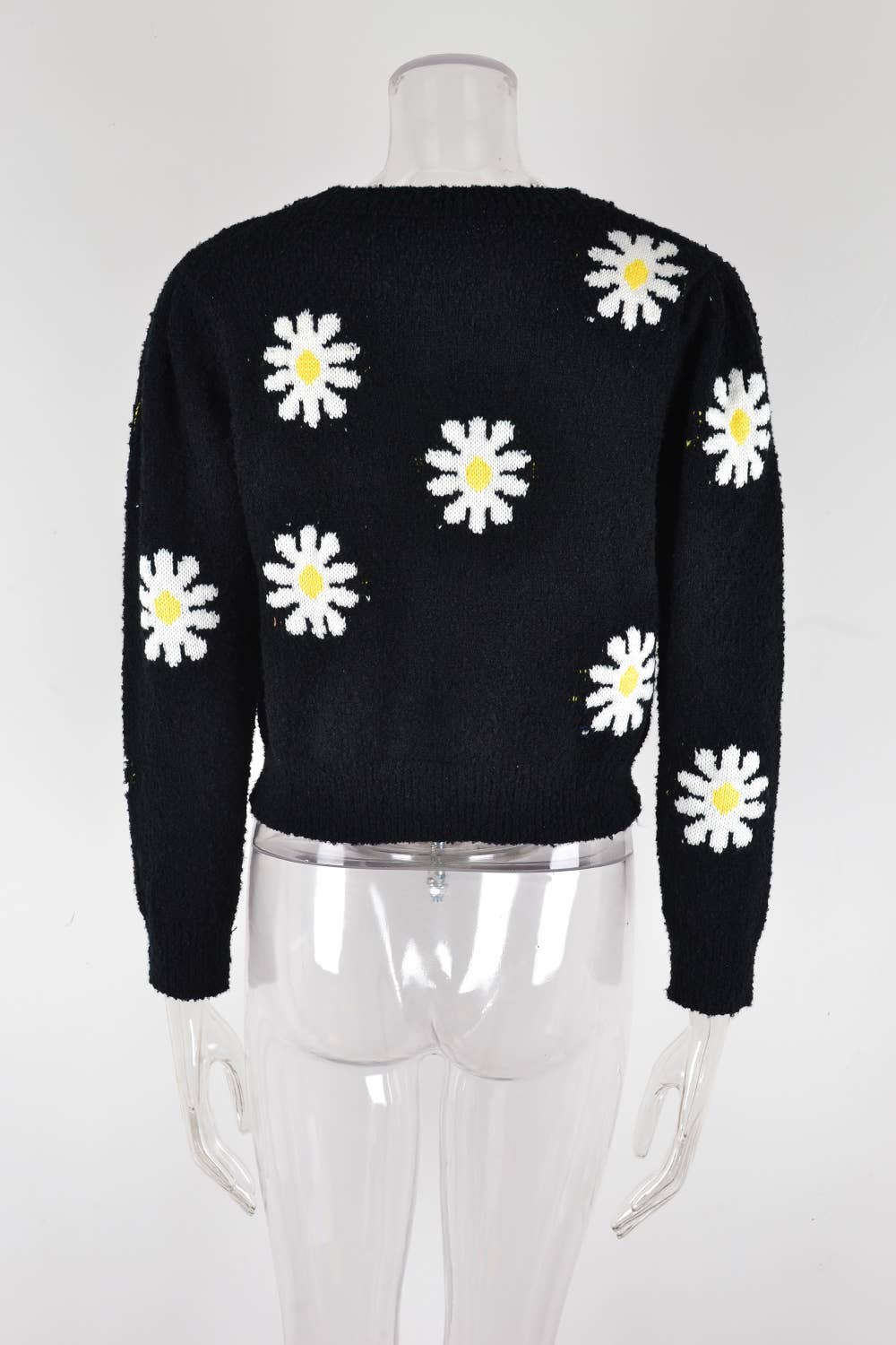 DAISIES ROUND NECK FLOWER KNIT FASHION SWEATER