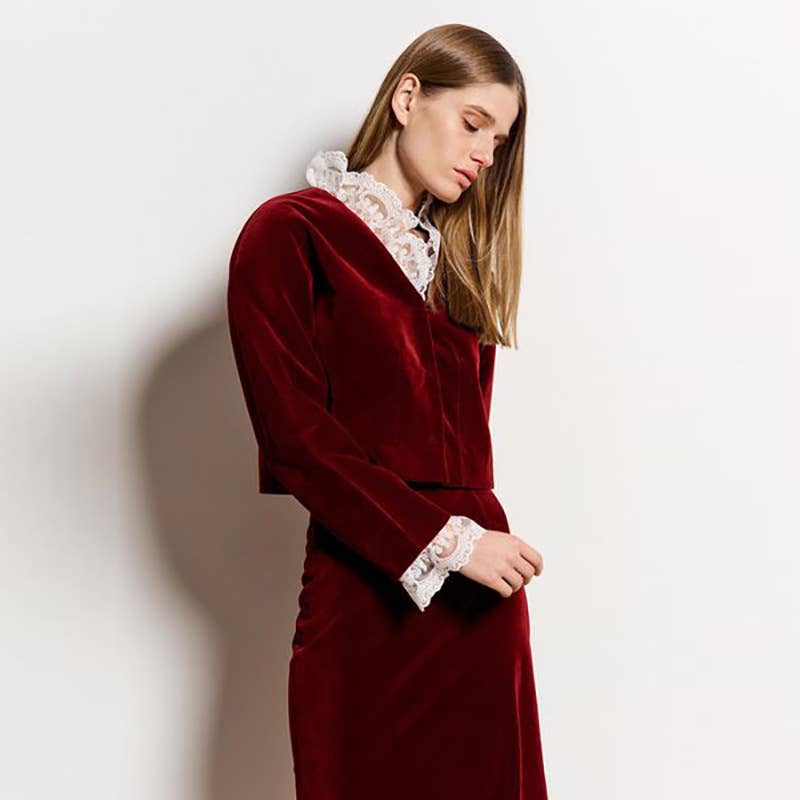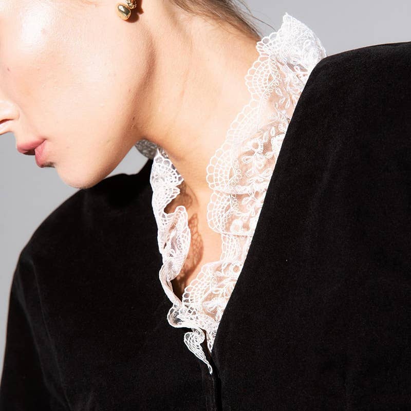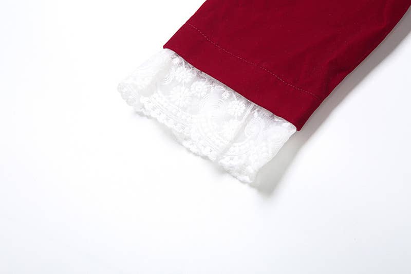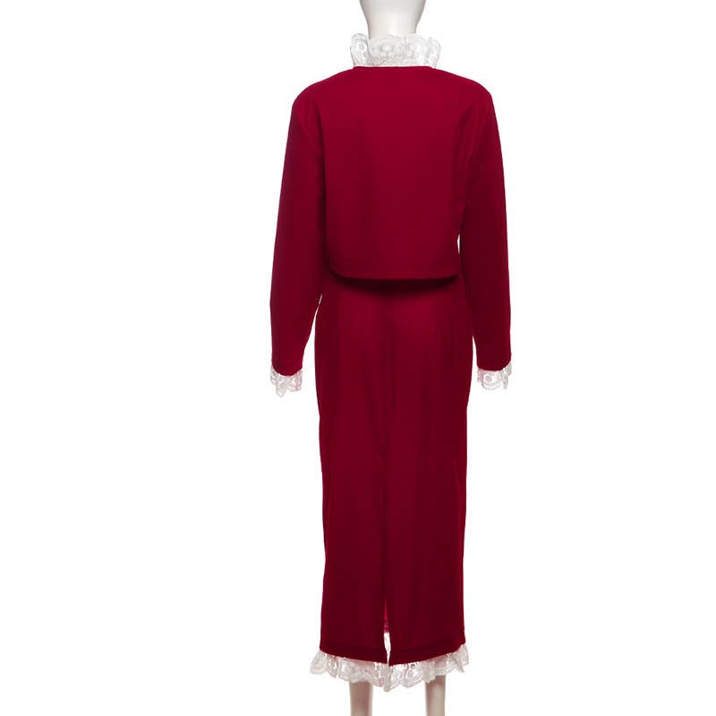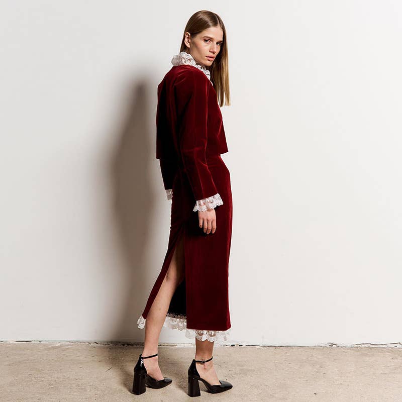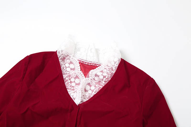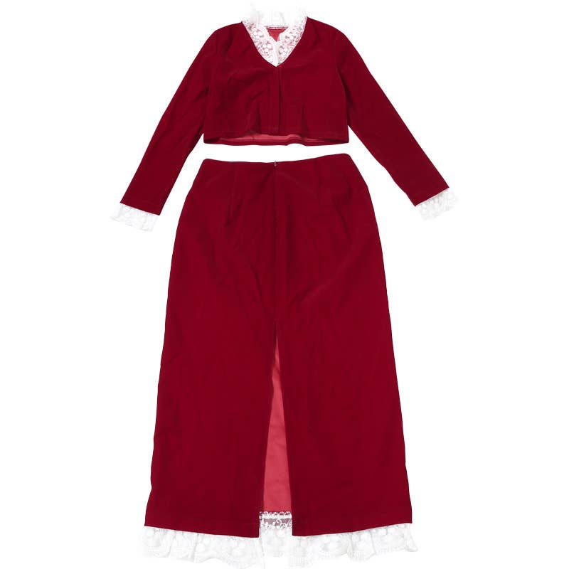 DEEP V LACE PATCHWORK CROP TOP SPLIT SKIRT SET