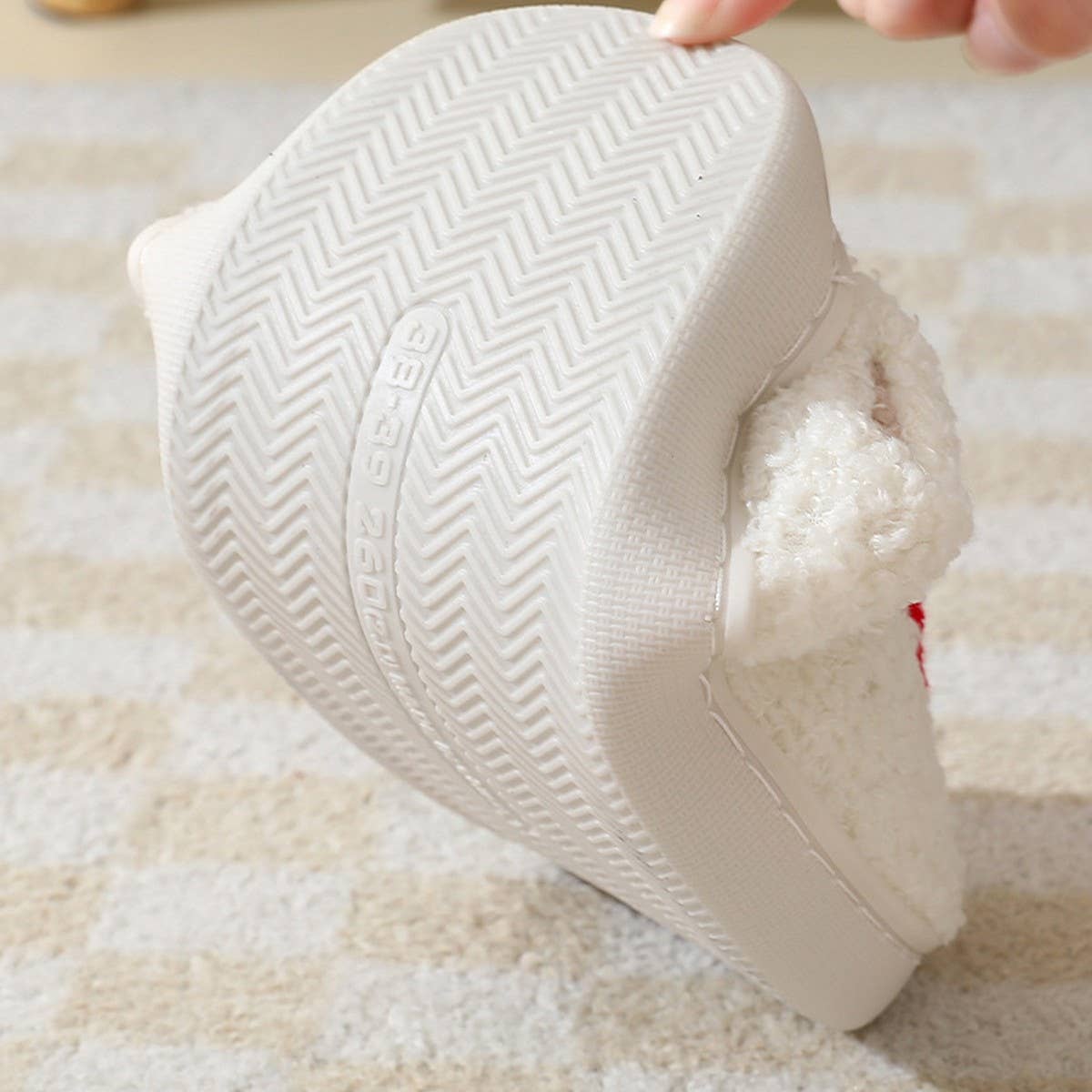 DEER PATTERNED CHRISTMA SANTA CLAUS INDOOR SLIPPER\nSIZE:6-7-8-9-10\nPattern Type: Cartoon, Christmas\nUpper Material: Fabric\nLining Material: Fabric\nInsole Material: Fabric\nOutsole Material: PVC\nSize:Sole 36/37 is suitable for 35-36 feet¡¼6¡½\n Sole 38/39 is suitable for 37-38 feet¡¼7¡½\n Sole 40/41 is suitable for 39-40 feet¡¼8¡½\n Sole 42/43 is suitable for 41-42 feet¡¼9¡½\n Sole 44/45 is suitable for 43-44 feet¡¼10¡½\nMADE IN CHINA\n\nTypes of products that will be on the shelves during this period: \nfuzzy slippers women,fuzzy slippers women black,fuzzy slippers women pink,fuzzy slippers women closed toe,fuzzy slippers women white,fuzzy slippers women outdoor,cozy slippers for women indoor and outdoor fuzzy,slippers for women indoor non fuzzy,fuzzy slippers for girls,fuzzy slippers for men,fuzzy slippers for teen girls.