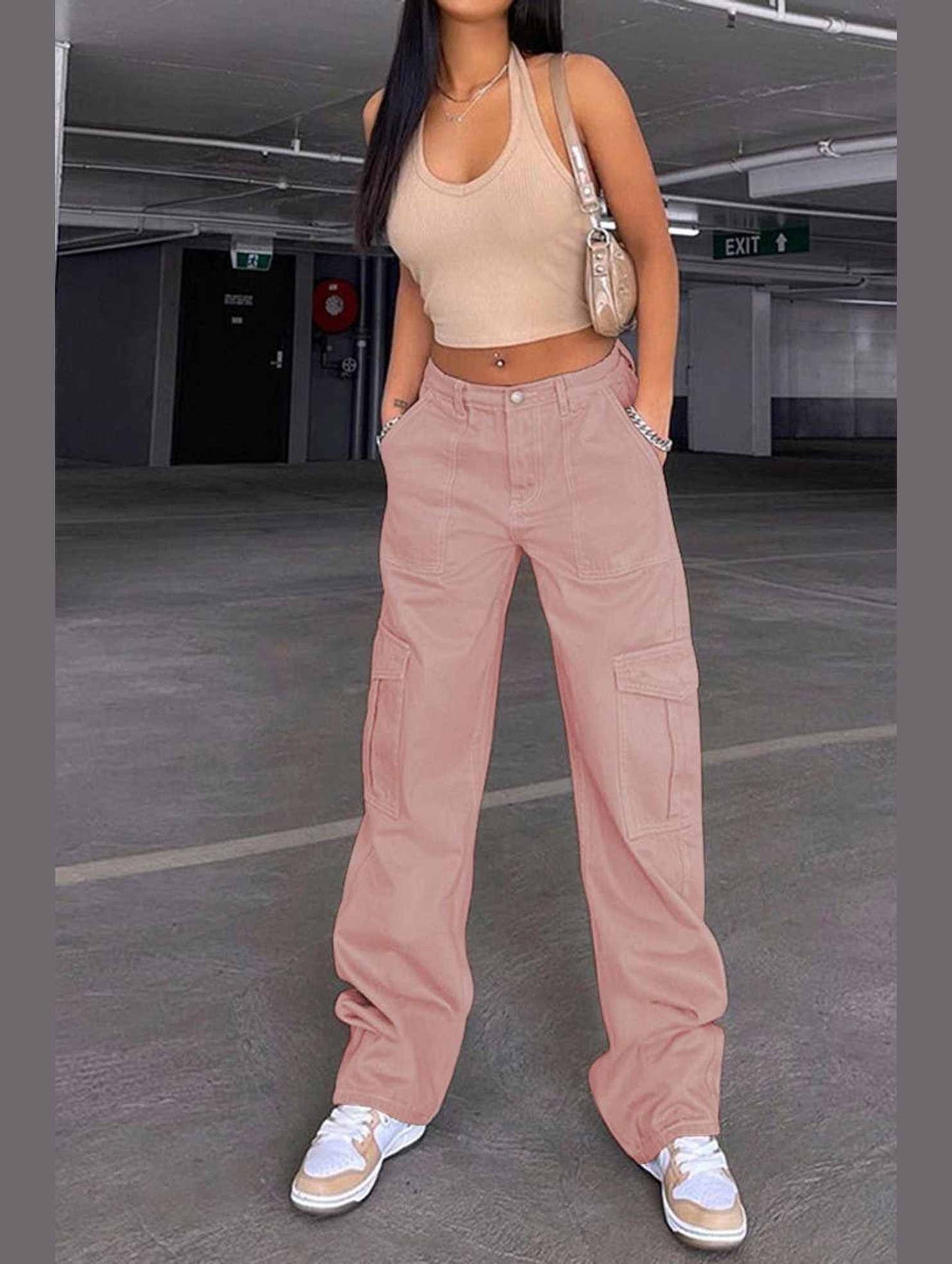 DENIM SEMI ELASTIC DESIGN CARGO PANTS