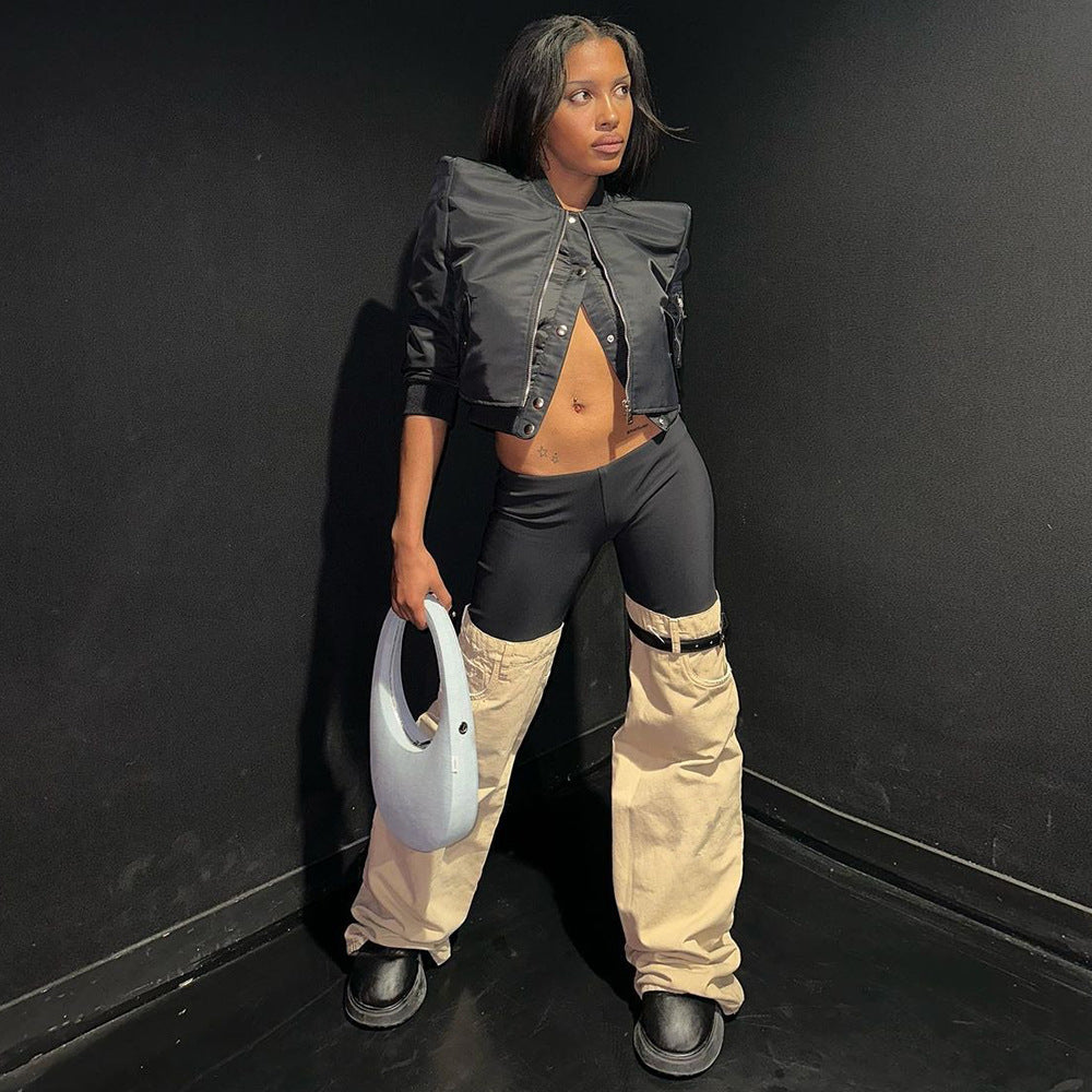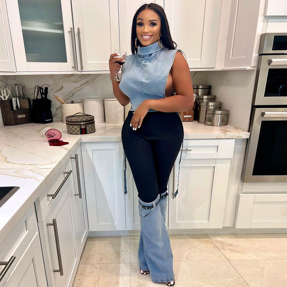 Increase quantity for Denim Stitching Elastic Slim Flare 3 Piece Pants