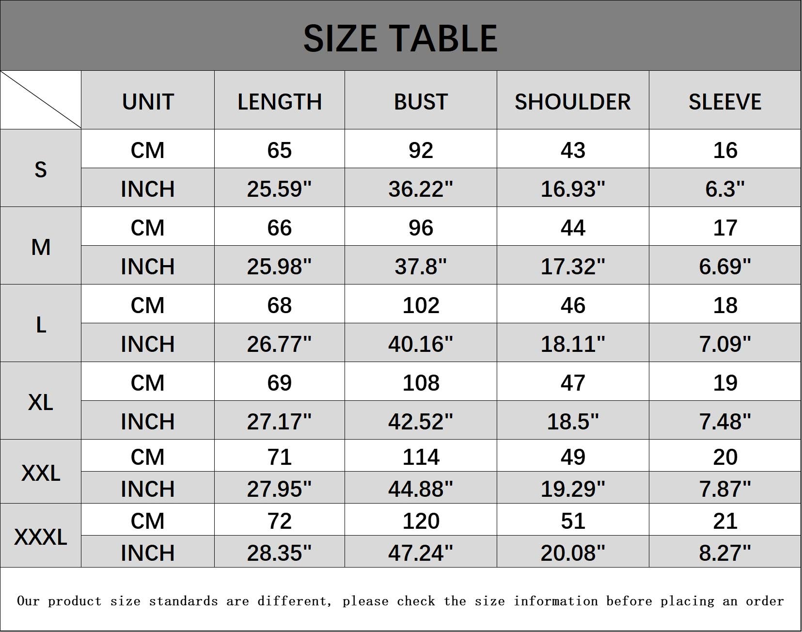 SIZES : S,M,L,XL,XXL,XXXL