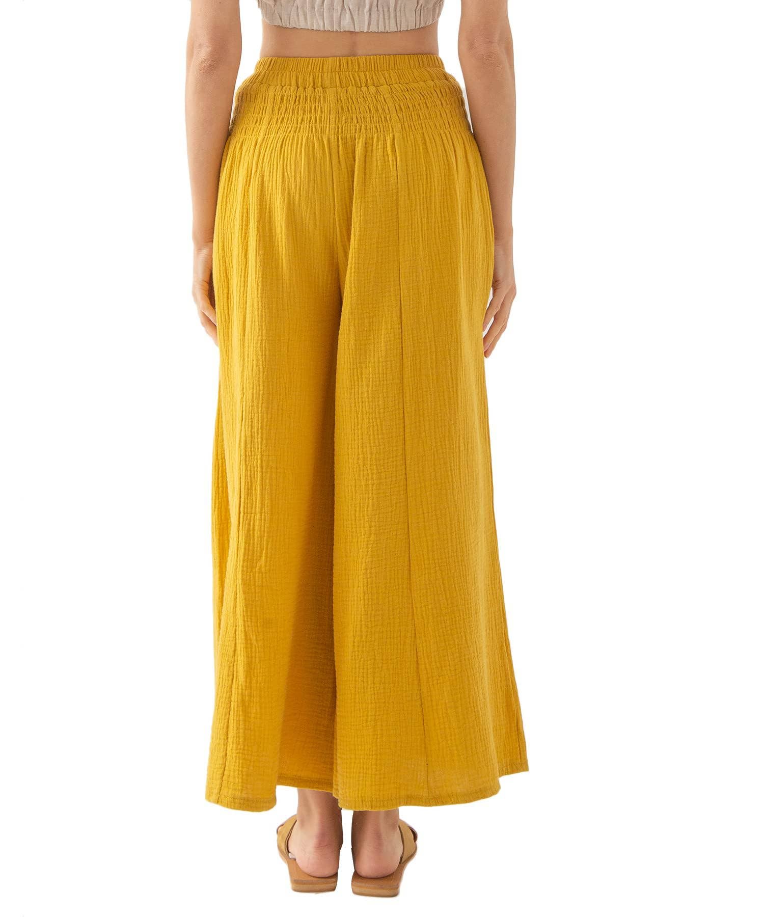 ELASTIC HIGH-WAISTED COTTON WIDE-LEG PANTS