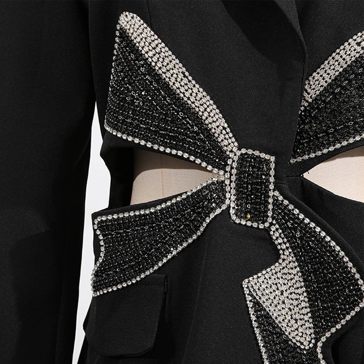 Elegant Beaded Bow Waist-Cut Blazer Jacket