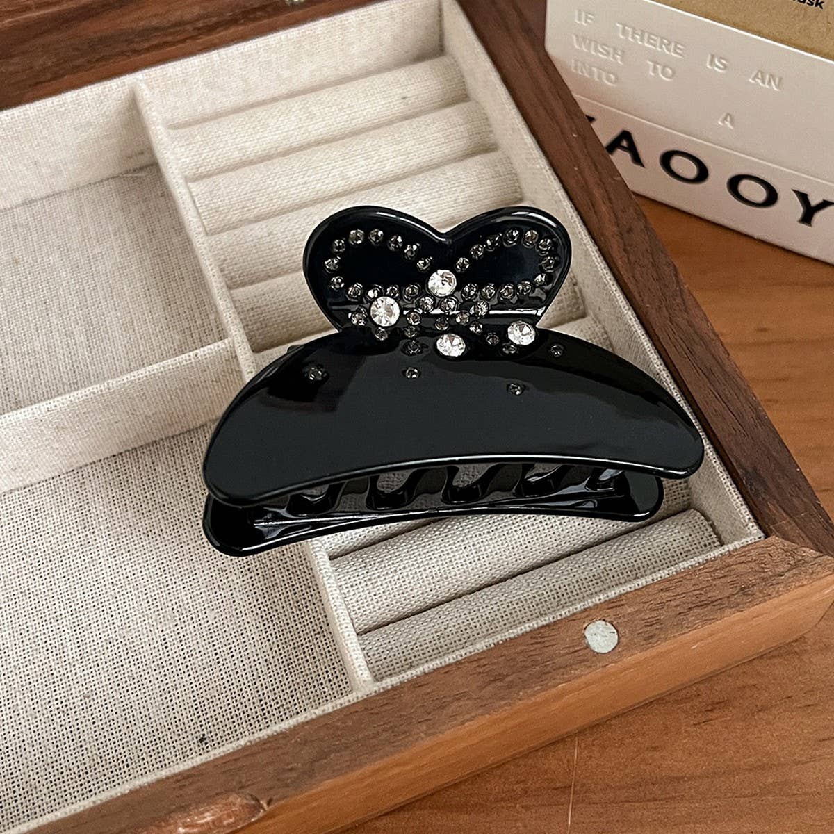 Elegant Bow Rhinestone Claw Clip ? Solid Color