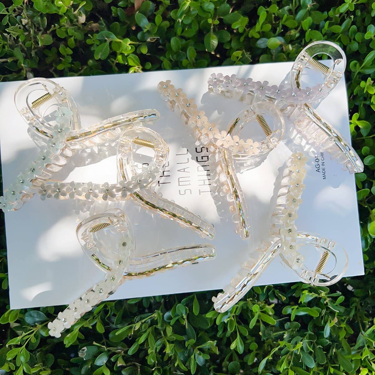 Elegant Glass Flower Hair Claw Simple Shark Clip_CWAHA1579