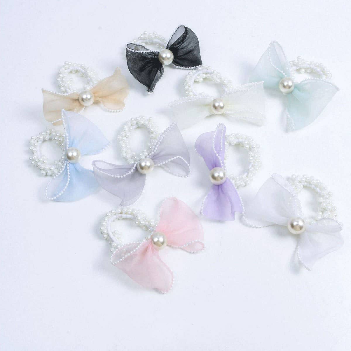 Elegant Organza Bow Pearl Hair Tie for Women