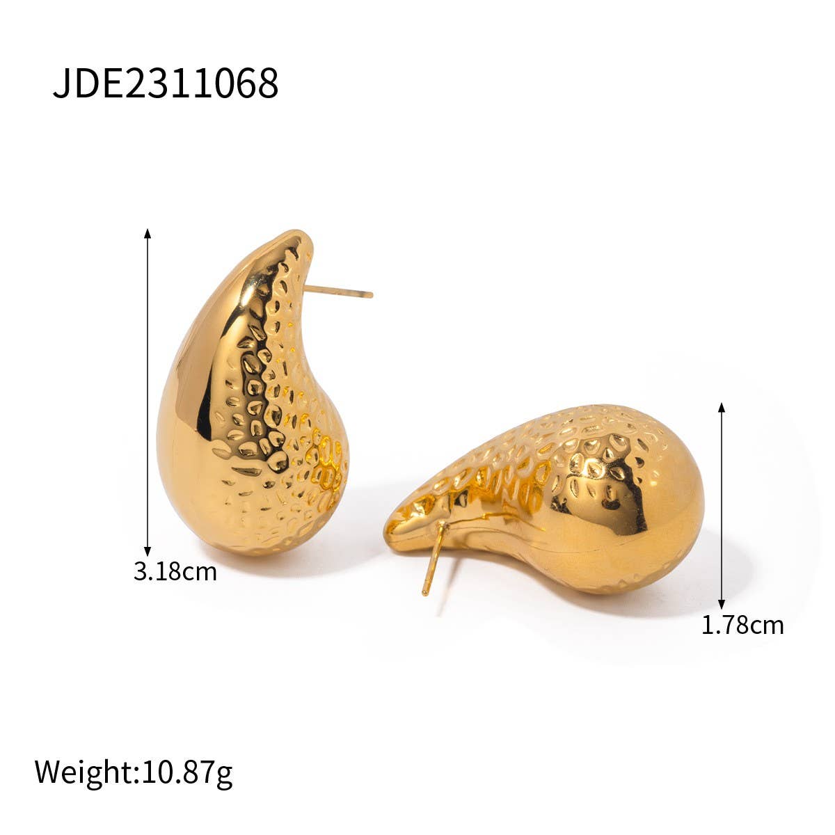 FASHION GLOSSY TEXTURED WATER DROP EARRINGS