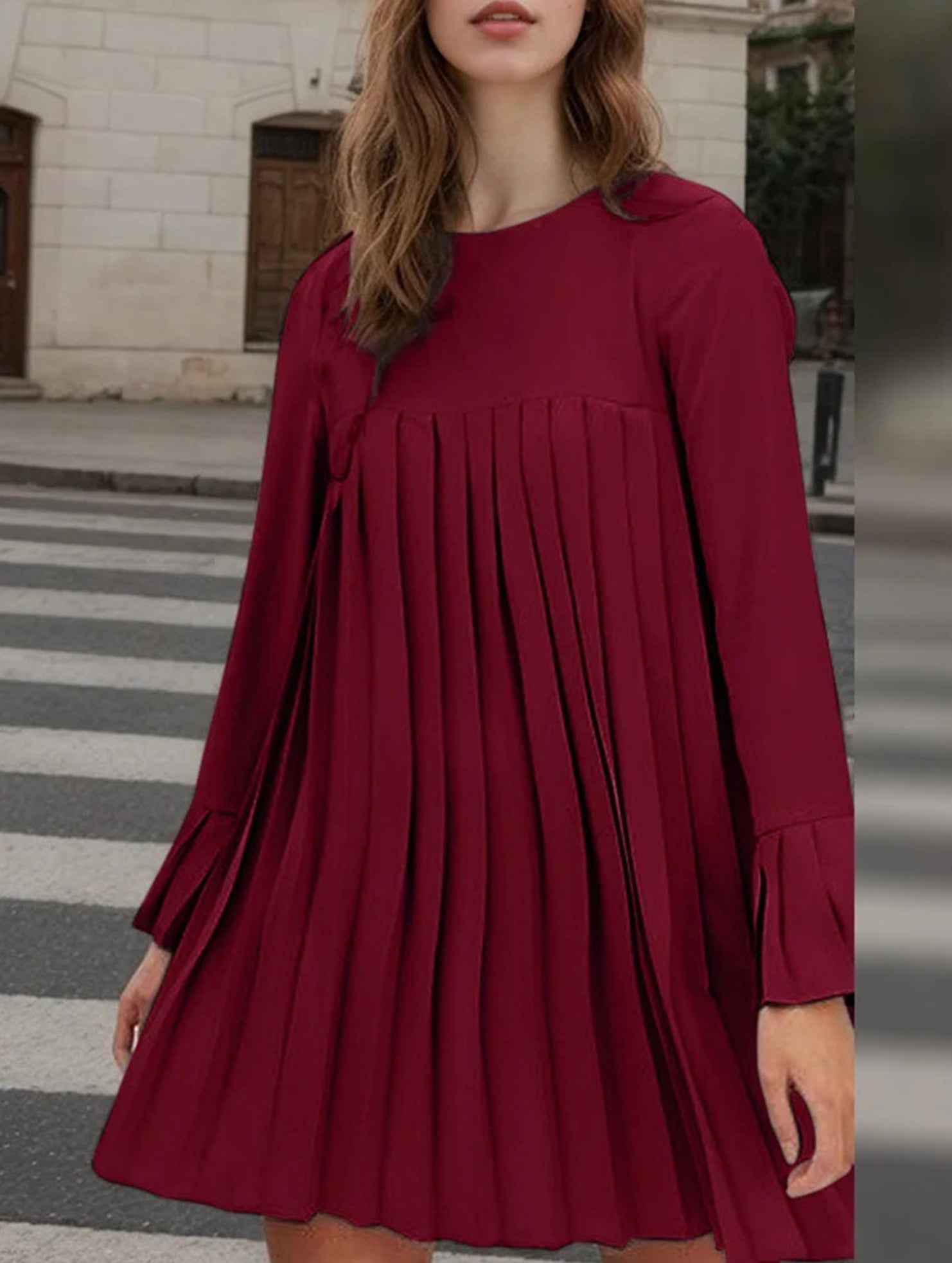Fashion solid color pleated dress