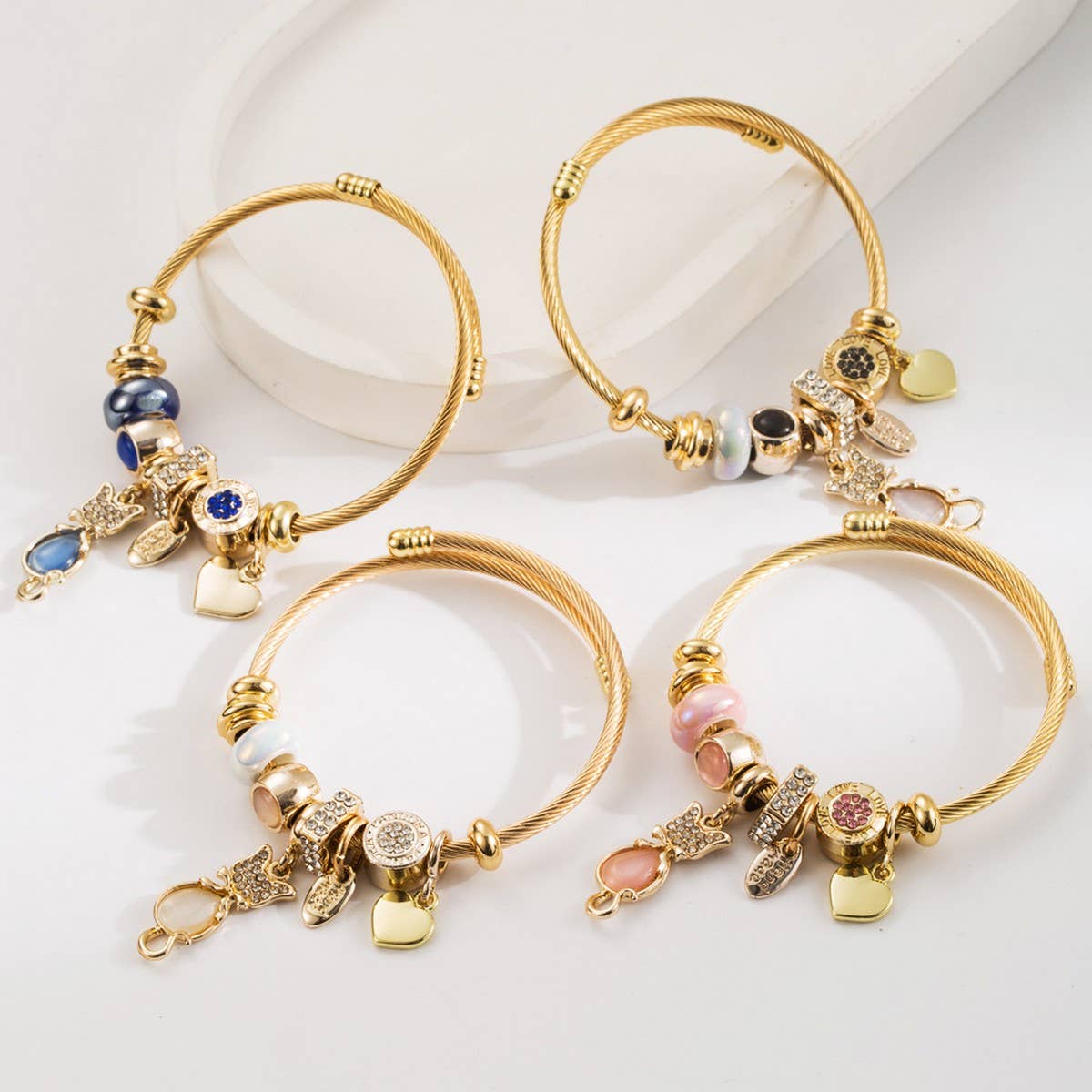 Fashionable Cat & Heart Beaded Steel Bracelet_CWMM8585