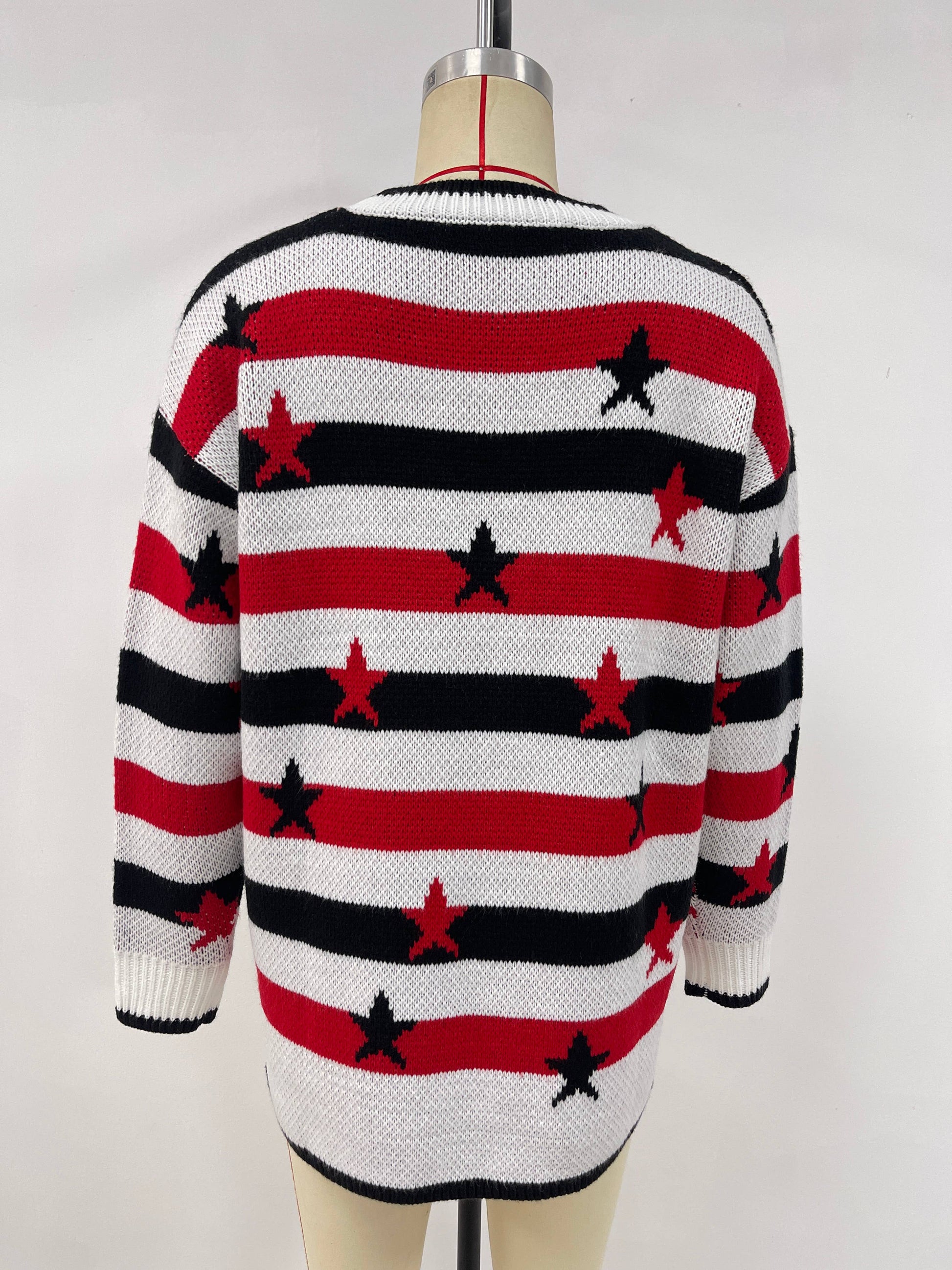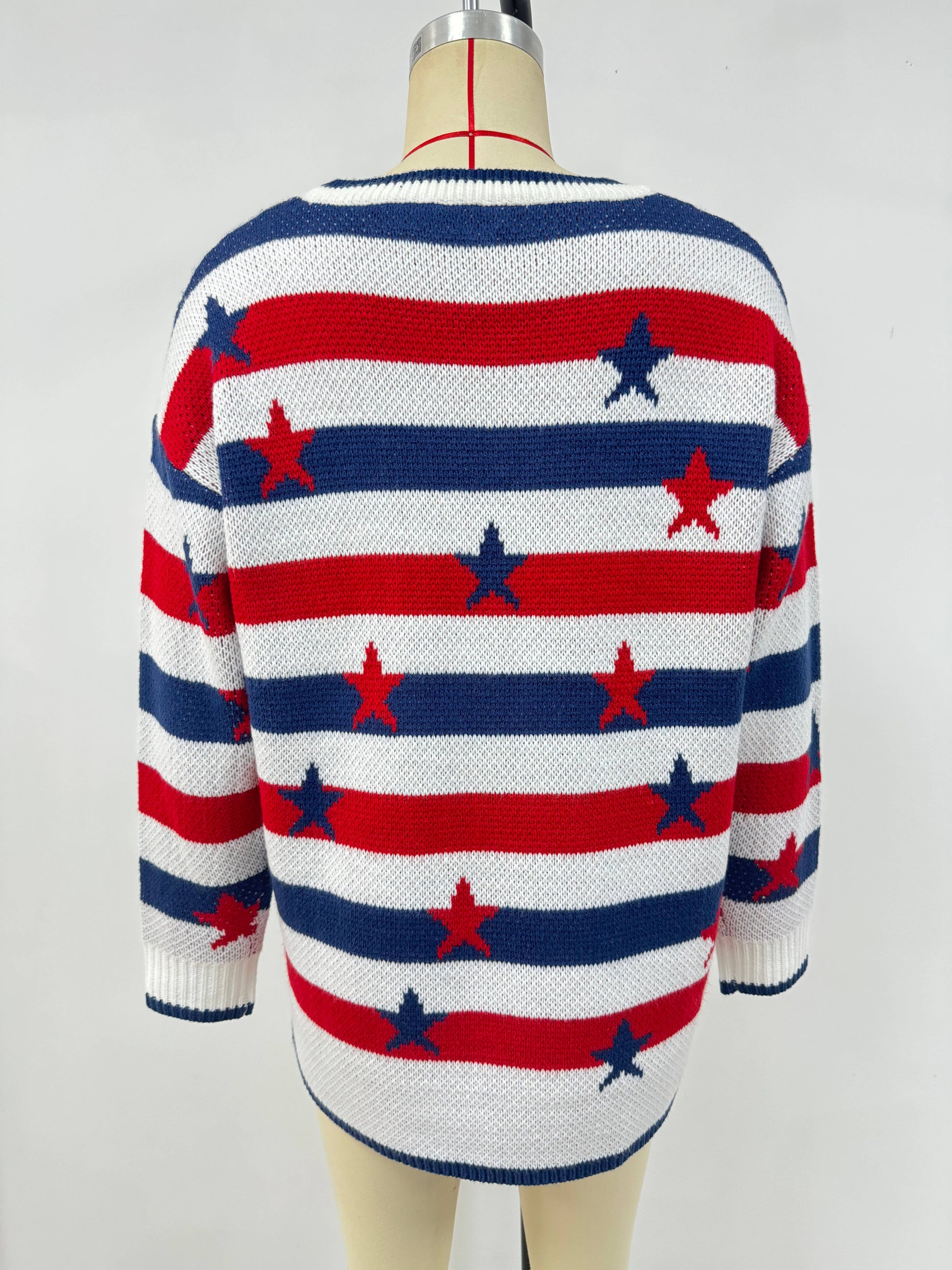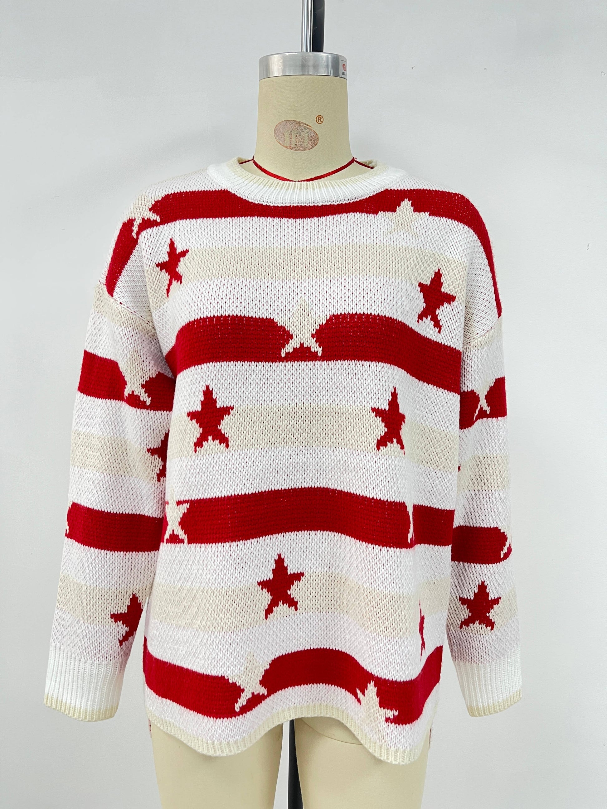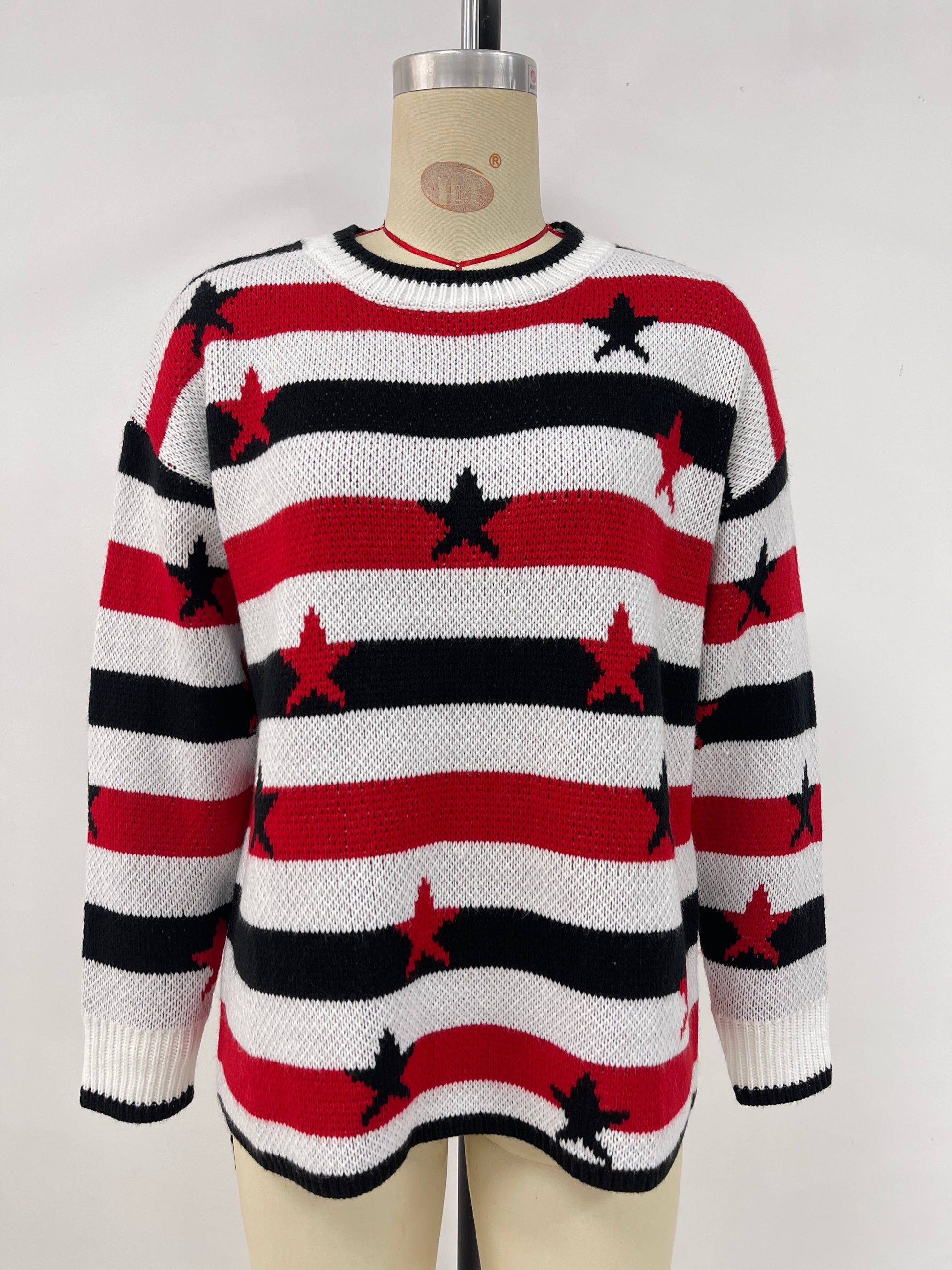 Fashionable flag print loose striped sweater