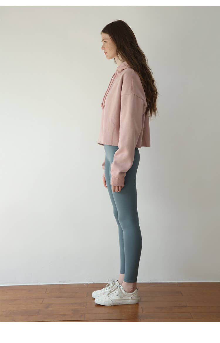 Fleece solid color sporty hooded sweatshirt