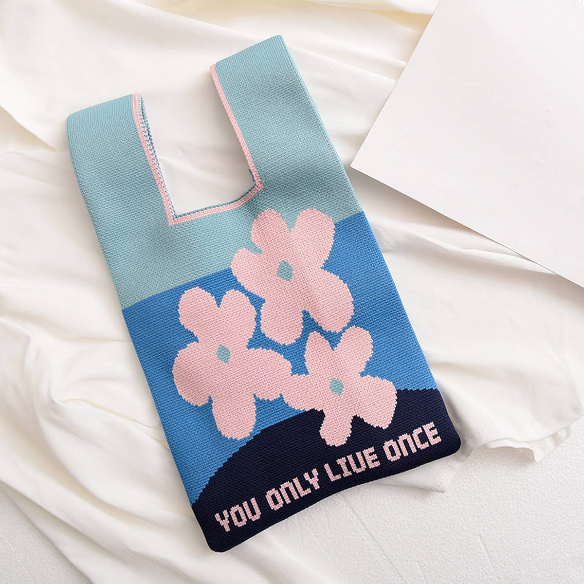 FLORAL PRINT CROCHET HANDBAG SMALL TOTE BAG_CWAB0882