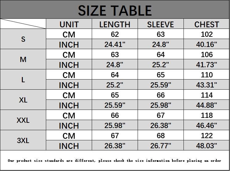 SIZES : S,M,L,XL,XXL,3XL