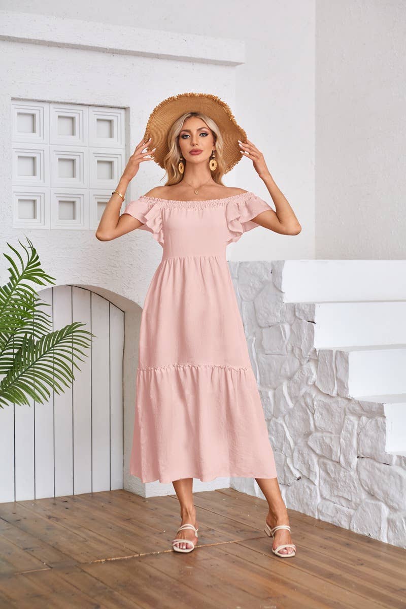 Fly-sleeve square neck off-the-shoulder dress