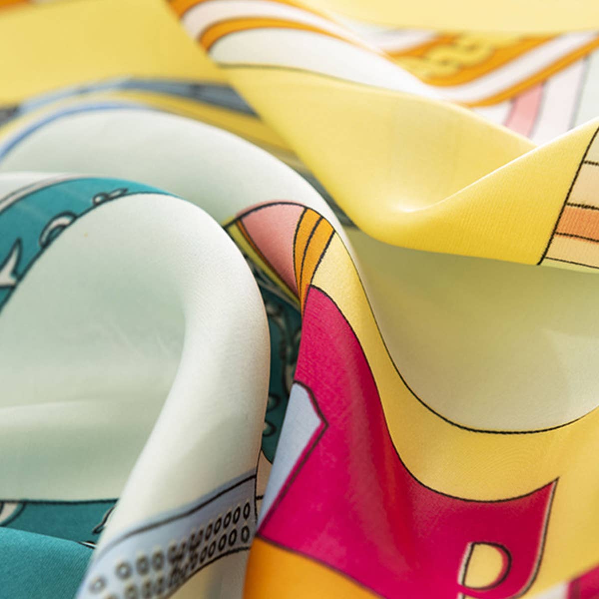 ? Product Name: Chiffon Satin Square Scarf\n? Material: 100% Polyester (Chiffon)\n? Weave Type: Satin Weave\n? Size: 70×70cm / 27.6"×27.6"\n? Weight: 37g\n\n???☆☆ Above average: decent quality for everyday use .\n\nTypes Of Products That Will Be On The Shelves During This Period:\nSilk scarf, Square scarf, Fashion scarf, Neck scarf, Hair scarf, Head scarf, Twilly scarf, Printed silk scarf, Horse print scarf, Vintage scarf, Satin scarf, Bandana scarf, Scarf for bag handle, Decorative scarf, French style scarf, Elegant neck scarf, Small silk scarf, Thin silk scarf, Boho scarf, Retro scarf, Striped silk scarf, Animal print scarf, Scarf for women, Scarf for hair, Scarf with border, Colorful silk scarf, Scarf for travel, Lightweight scarf.