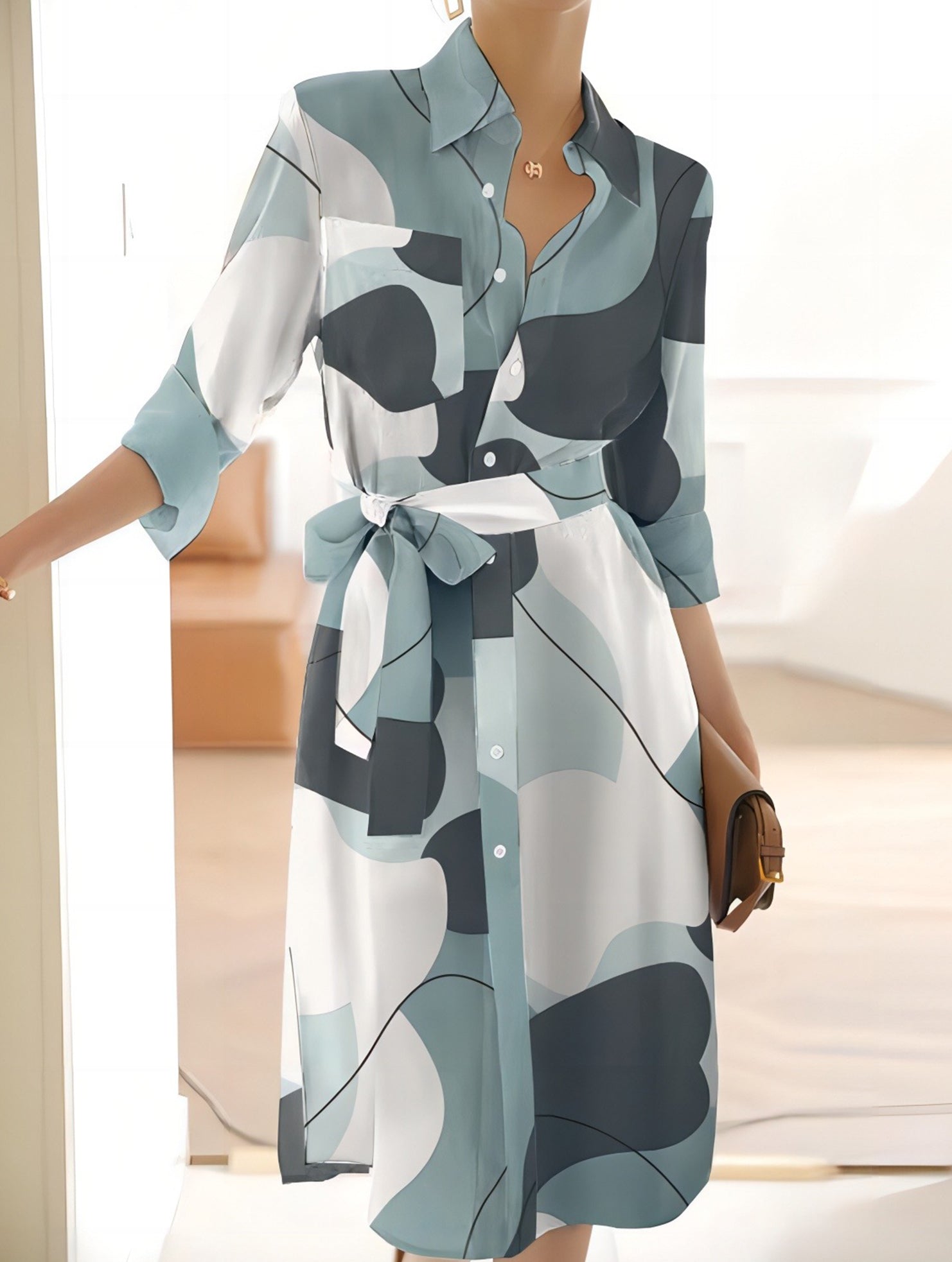 GEOMETRIC PRINT SLIT CASUAL BUTTON DRESS