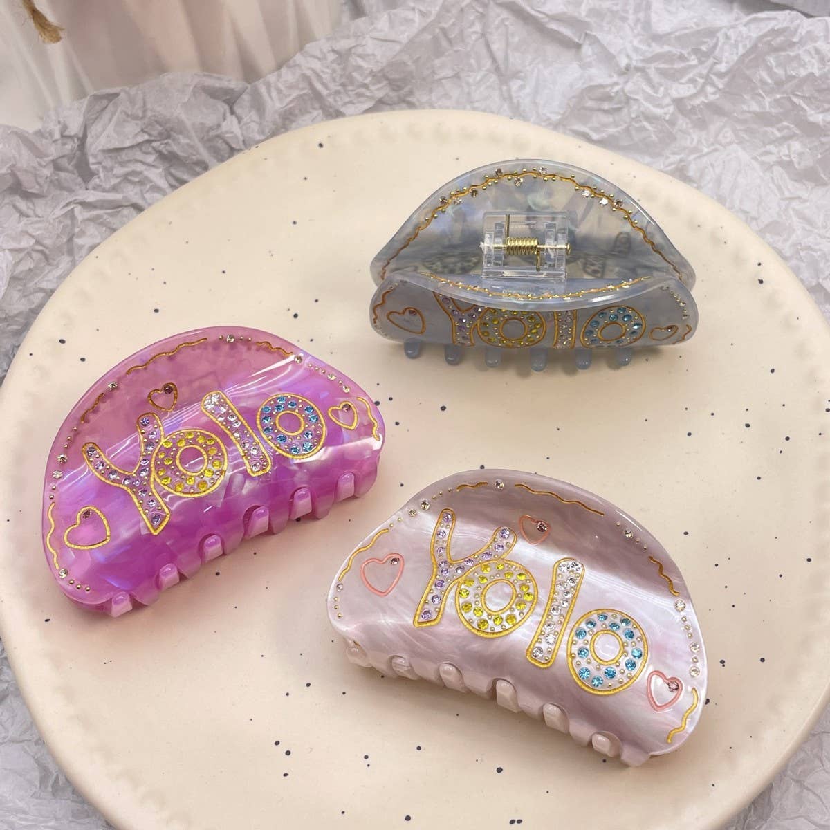 HAIR CLAW CLIP WITH YOLO LETTERS AND RHINESTONES