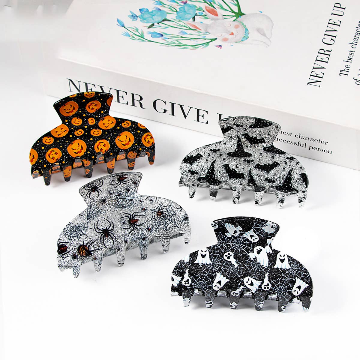 ? Size: Approx. 8.7cm / 3.43in\n? Material: Acrylic\n? Design Elements:\n?? Witch Hat ?? ¡Ï? ? Pumpkin ?? ? Spider ?? ? Ghost ?? ? Glitter Print Finish ?\n? Style: Whimsical and fun ? ideal for Halloween parties, cosplay, school spirit days, or spooky-season gifting\n\n#halloweenhairclip #witchhathairclaw #pumpkinclip #ghosthairaccessory #spiderclip #acrylichairclaw #87cmhairclip #spookyseasonclip #glitterhairclip #holidayhairaccessory\nTypes of products that will be on the shelves during this period:\nHair claw clip set, large hair claw clip, flower hair claw, boho claw clip, pearl hair claw, modern hair claw, rhinestone claw clip, colorful hair claw, hair clips claw, hair clips for women, wholesale hair clips, bulk hair clips, hair clip display, clips for hats, clips for kids, mini hair clips, trendy hair clips, fashion hair claws, strong hold hair clip, acrylic claw clip.