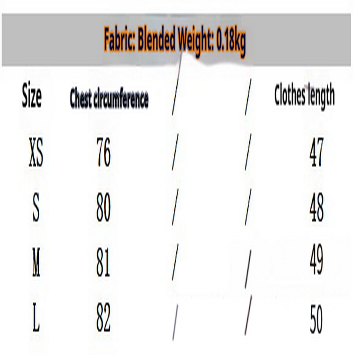 '- Material: Polyester\n- Size: XS, S, M, L\n- Weight: 180g