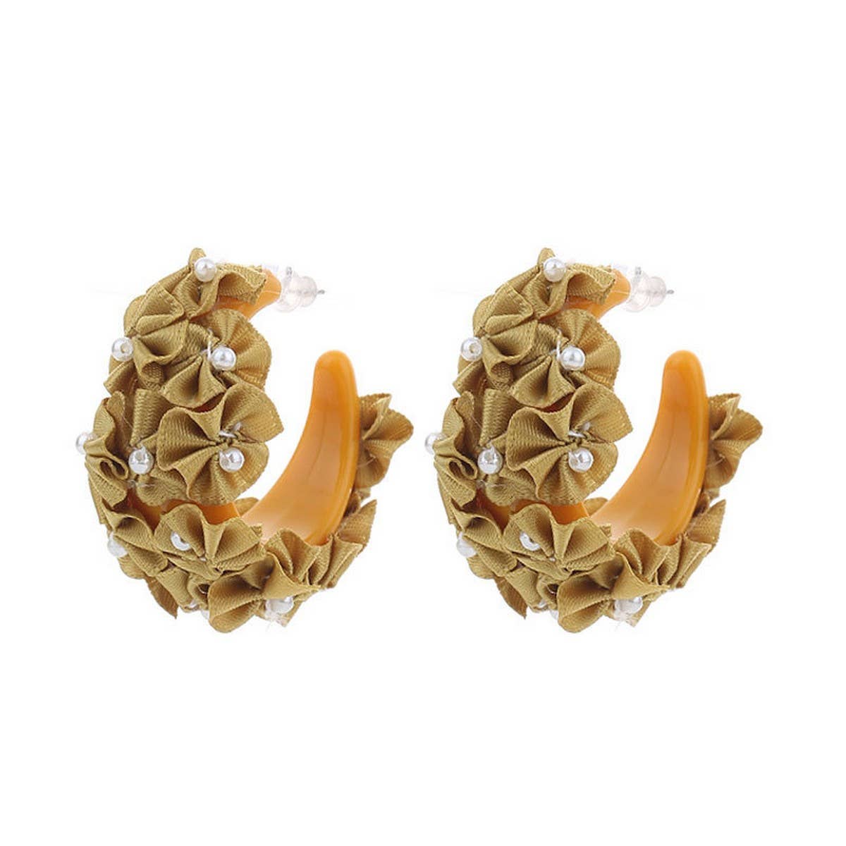 Handmade Fabric Flower C-Hoop Earrings Fresh Style