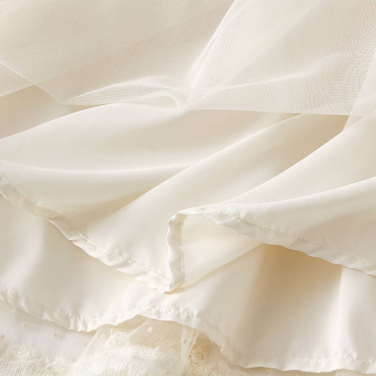Lace Ruffle Trim Polka Dot Tulle Skirt