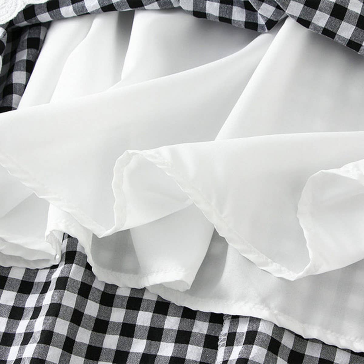 Lace Trim Plaid High-Waist A-Line Midi Skirt